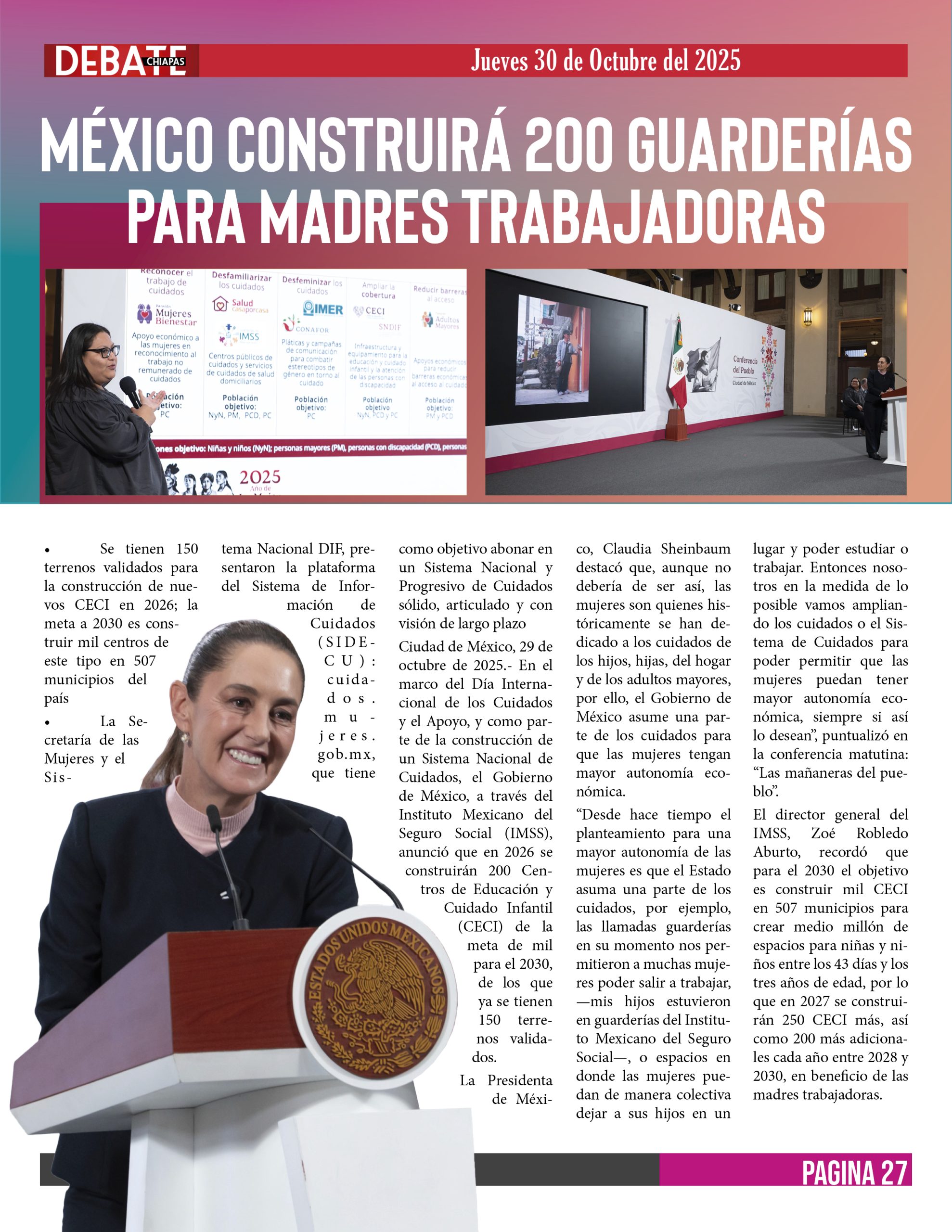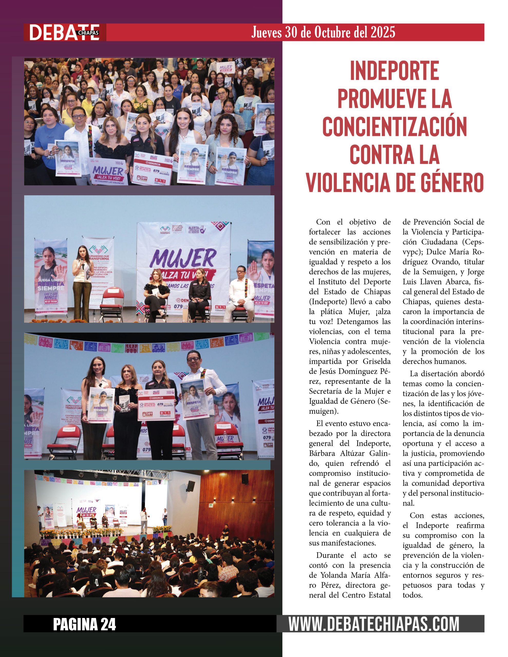 Periódico Debate Chiapas jueves 30 de Octubre del 2025