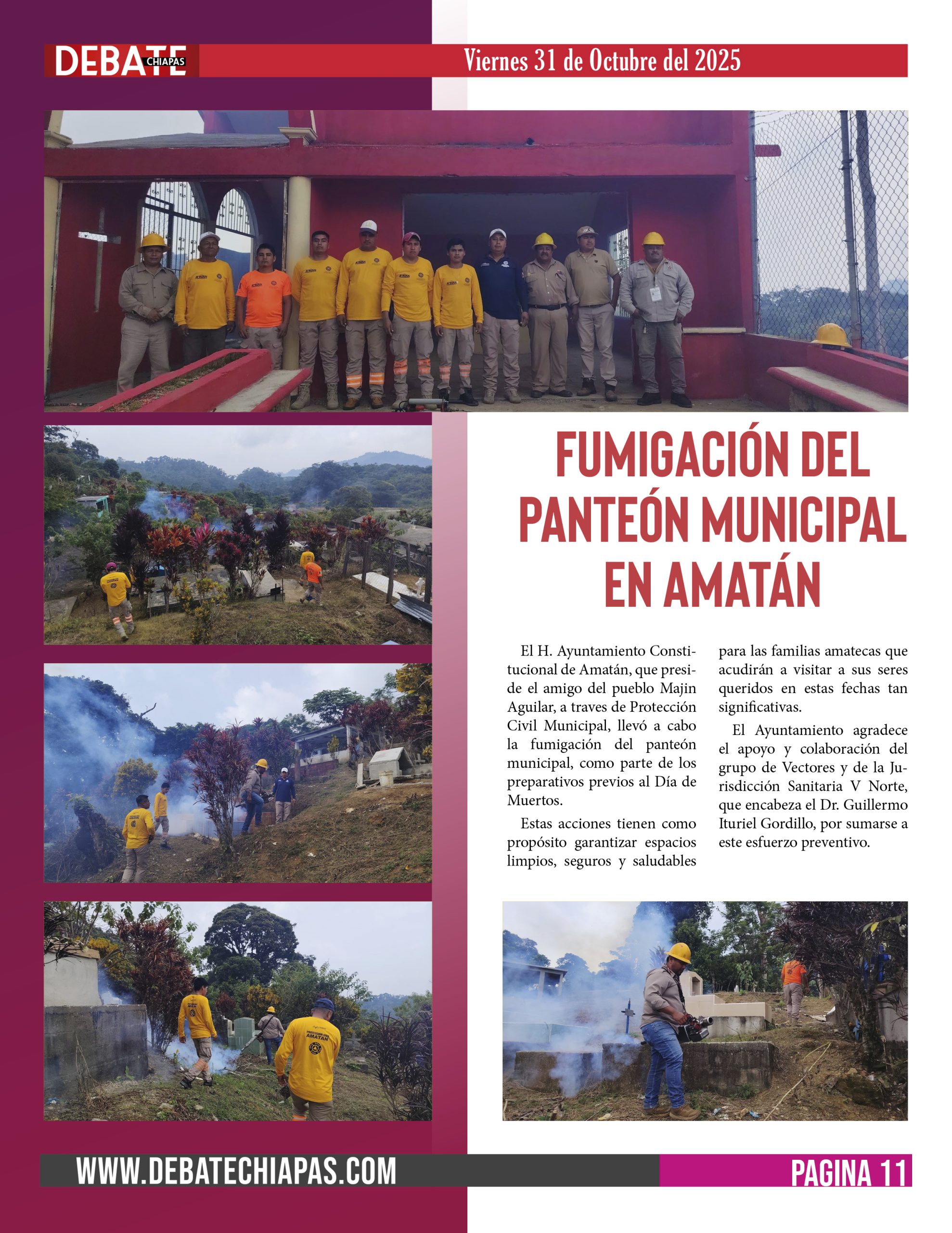 El H. Ayuntamiento Constitucional de Amatán, que preside el amigo del pueblo Majin Aguilar, a traves de Protección Civil Municipal, llevó a cabo la fumigación