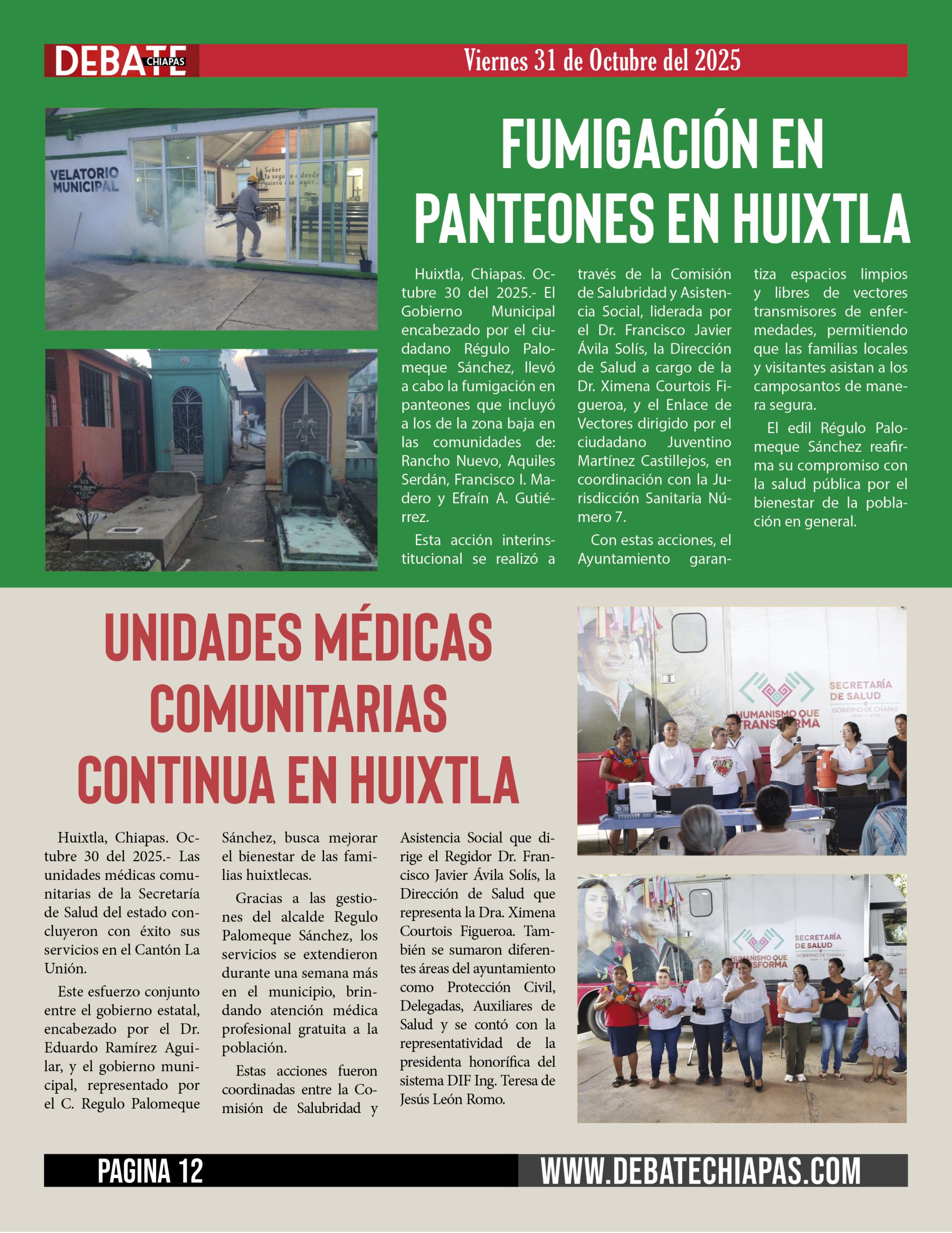 Huixtla, Chiapas. Octubre 30 del 2025.- Las unidades médicas comunitarias de la Secretaría de Salud del estado concluyeron con éxito sus servicios en el Cantón