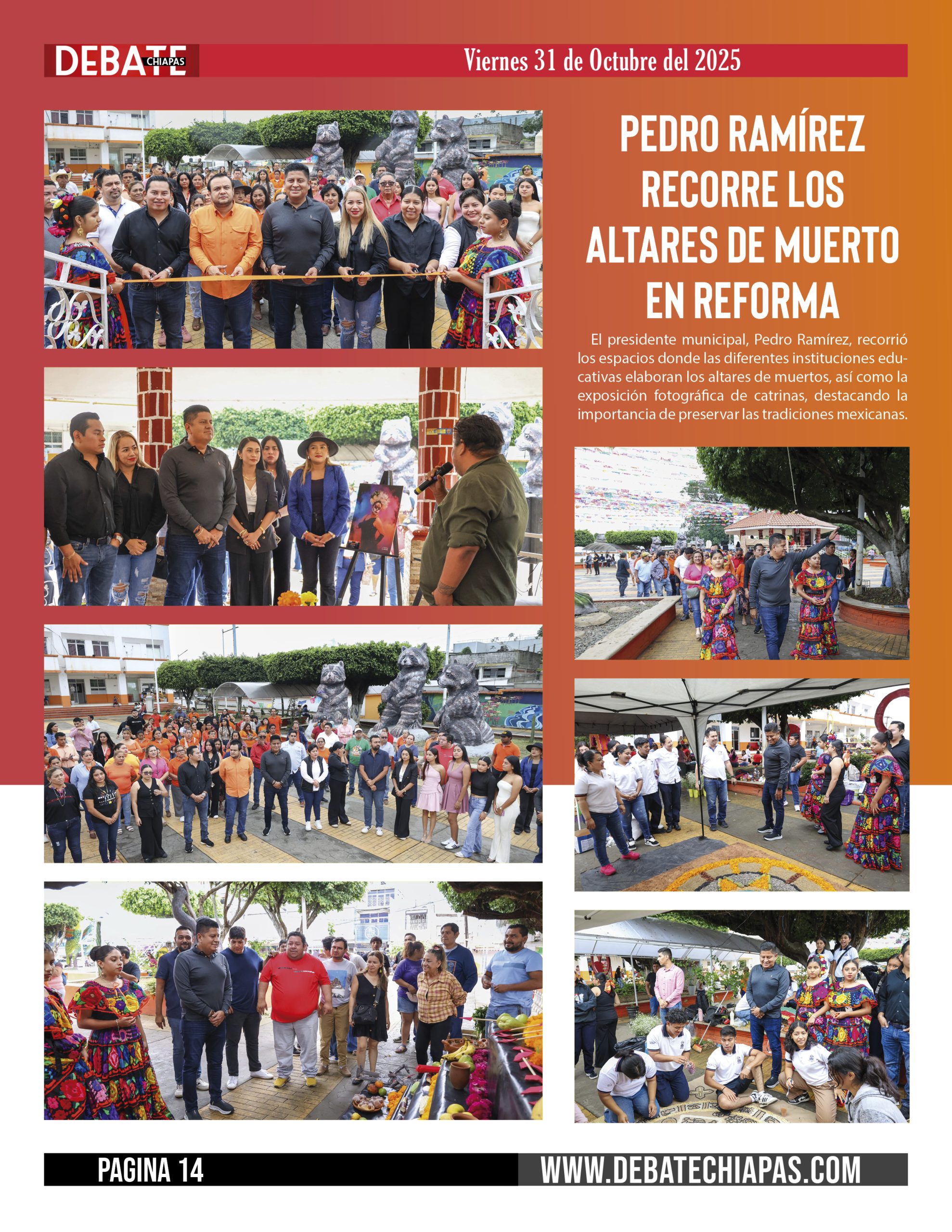 El presidente municipal, Pedro Ramírez, recorrió los espacios donde las diferentes instituciones educativas elaboran los altares de muertos, así como la exposición fotográfica de catrinas,