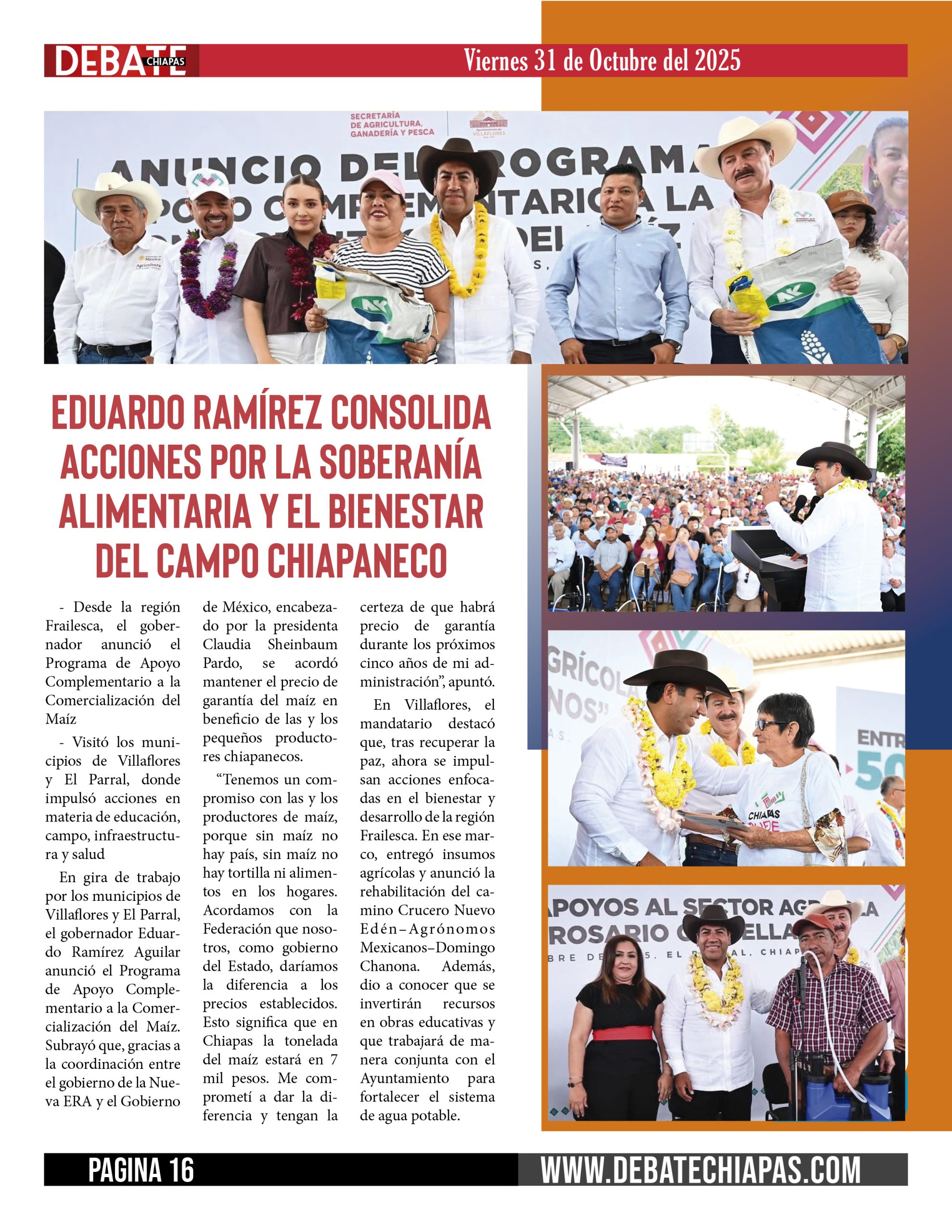 – Desde la región Frailesca, el gobernador anunció el Programa de Apoyo Complementario a la Comercialización del Maíz – Visitó los municipios de Villaflores y