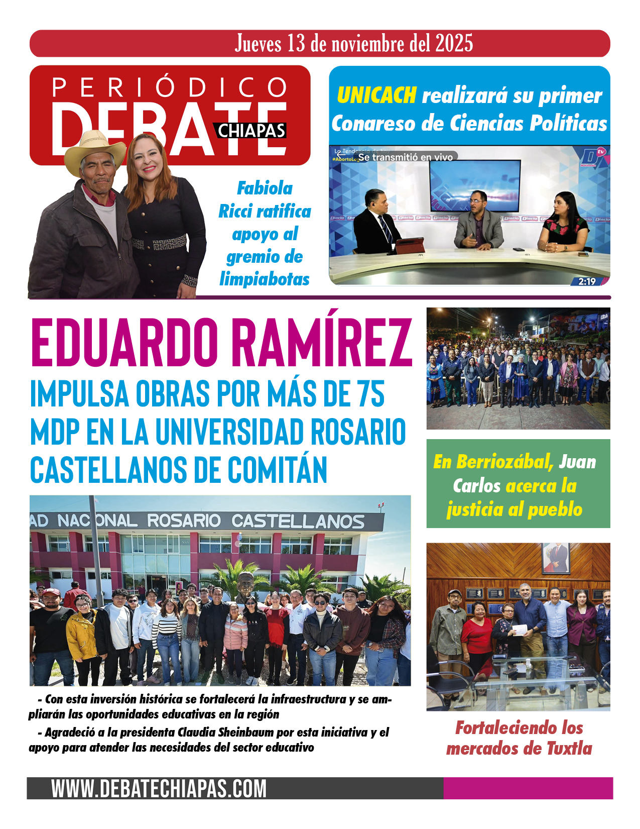 Dúo verde en Huehuetan Manuel Ángel y Ladislao Juan se perfilan para el 2027https://debatechiapas.com/duo-verde-en-huehuetan-manuel-angel-y-ladislao-juan-se-perfilan-para-el-2027/ Afirma SSP que no existen bandas delictivas en Huixtlahttps://debatechiapas.com/afirma-ssp-que-no-existen-bandas-delictivas-en-huixtla/ Eduardo Ramírez