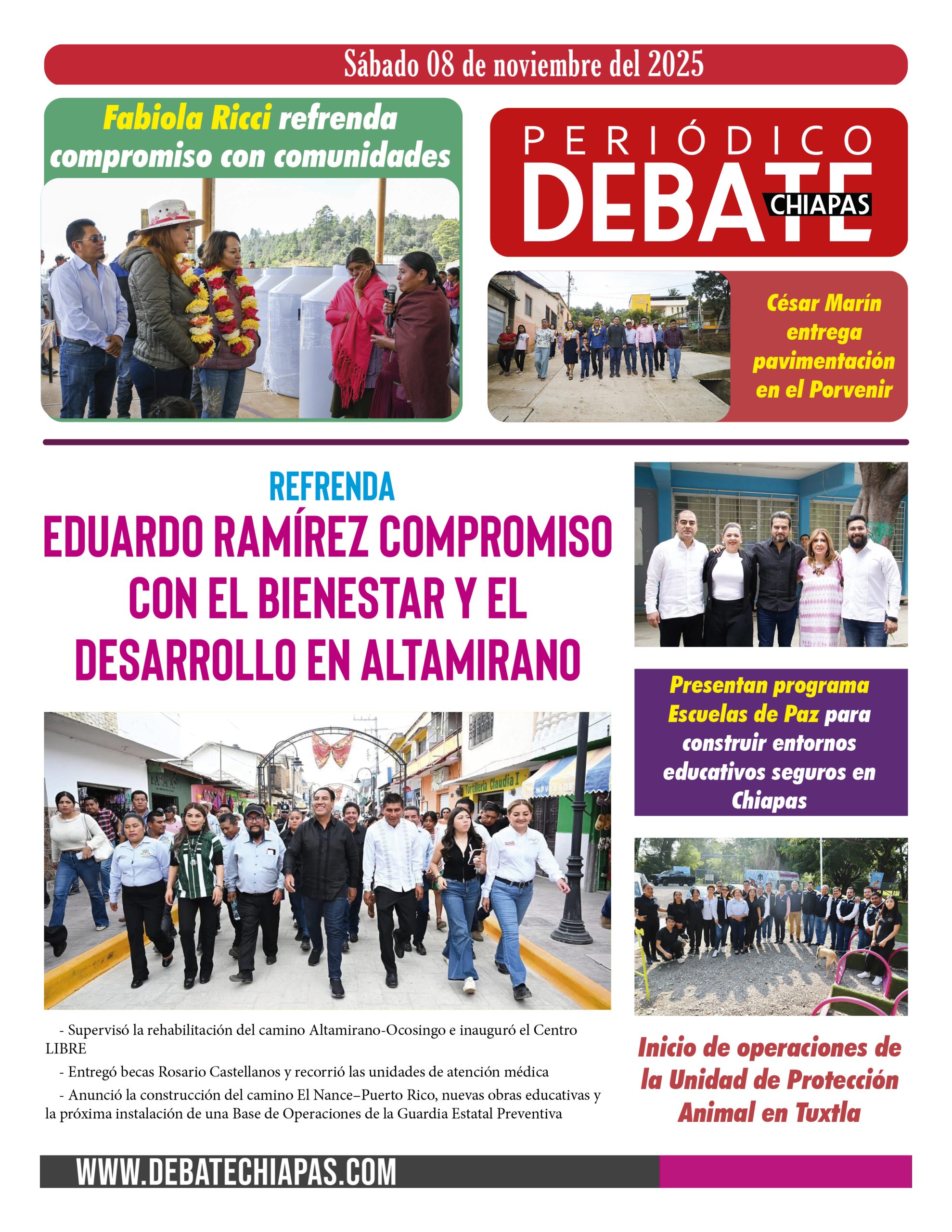 Presentan programa Escuelas de Paz para construir entornos educativos seguros en Chiapashttps://debatechiapas.com/presentan-programa-escuelas-de-paz-para-construir-entornos-educativos-seguros-en-chiapas/ Refuerza Óscar Aparicio la seguridad en Altamiranohttps://debatechiapas.com/refuerza-oscar-aparicio-la-seguridad-en-altamirano/ Refrenda Eduardo Ramírez compromiso con el