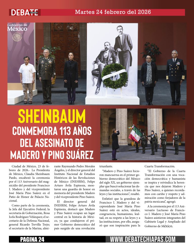 General Sheinbaum conmemora 113 años del asesinato de Madero y Pino Suárez Leer más » febrero 23, 2026