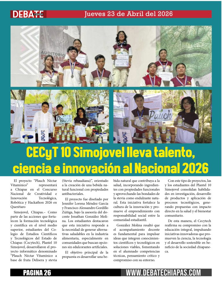 General CECyT 10 Simojovel lleva talento, ciencia e innovación al Nacional 2026 Leer más » abril 22, 2026
