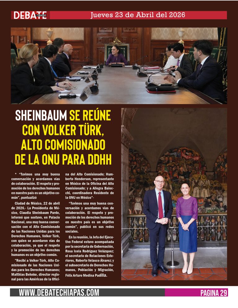 General Sheinbaum se reúne con Volker Türk, Alto Comisionado de la ONU para DDHH Leer más » abril 22, 2026