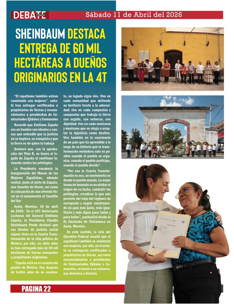 General Sheinbaum destaca entrega de 60 mil hectáreas a dueños originarios en la 4T Leer más » abril 10, 2026