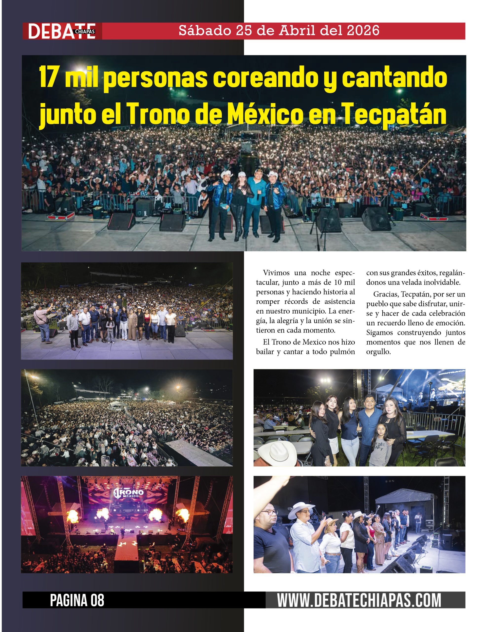 17 mil personas coreando y cantando junto el Trono de México en Tecpatán