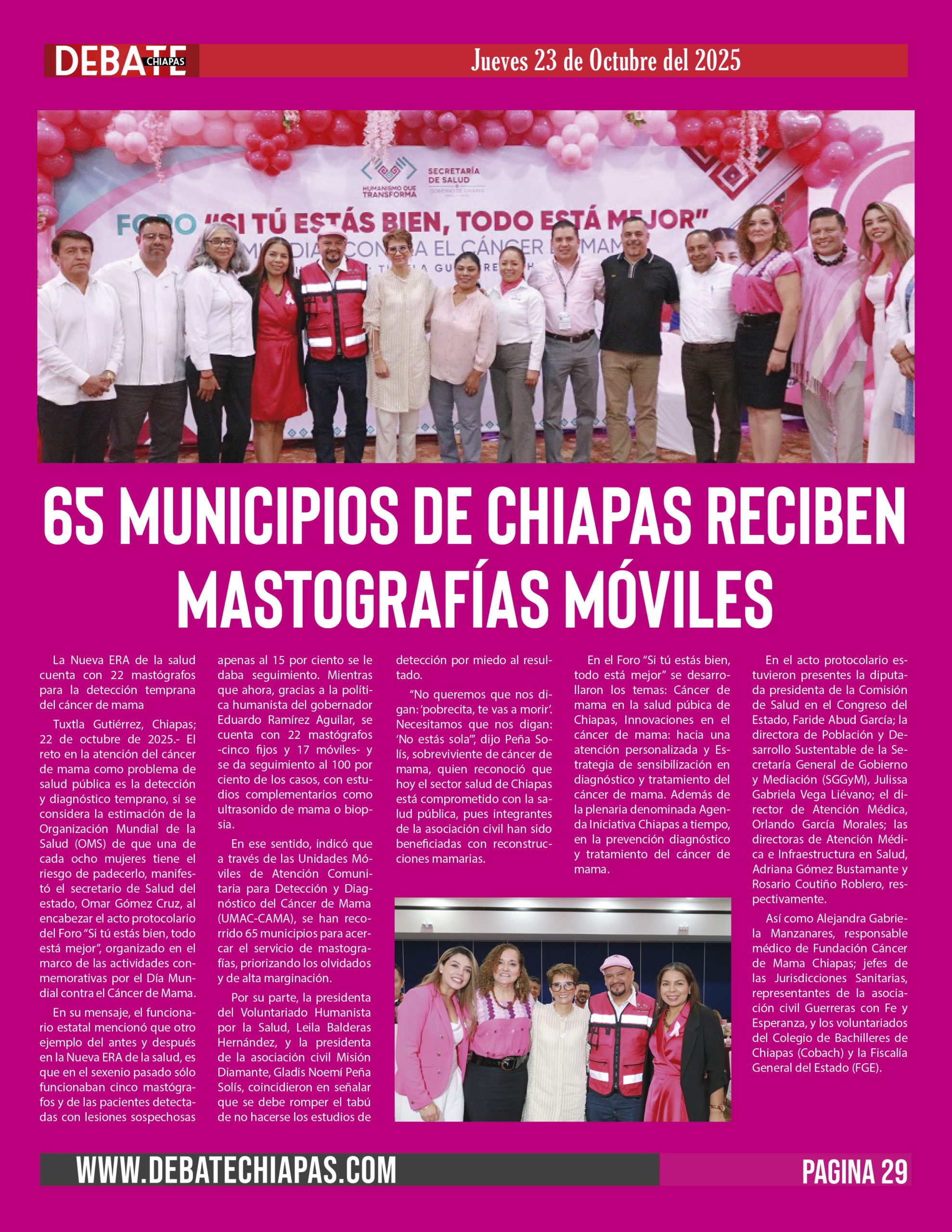 «No queremos que nos digan: ‘pobrecita, te vas a morir’. Necesitamos que nos digan: ‘No estás sola'», dijo Peña Solís, sobreviviente de cáncer de mama, quien reconoció que hoy el sector salud de Chiapas está comprometido con la salud pública, pues integrantes de la asociación civil han sido beneficiadas con reconstrucciones mamarias.