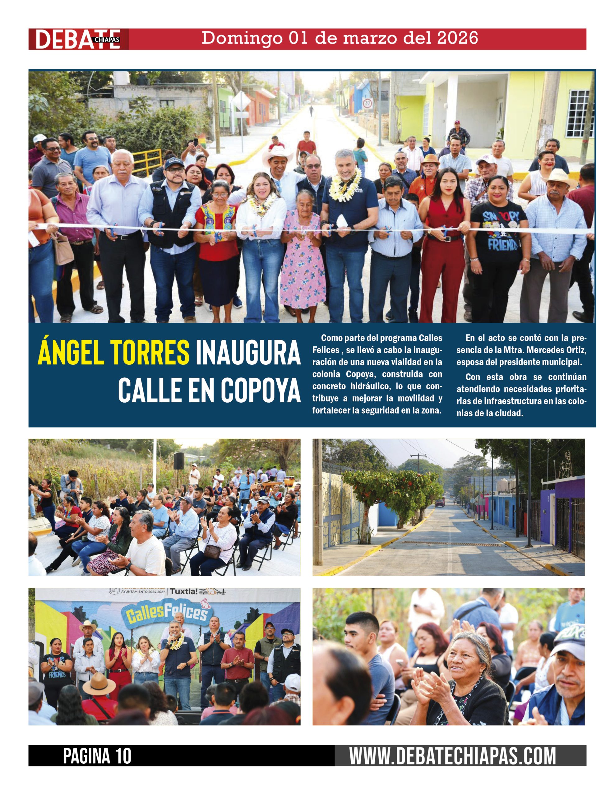 Como parte del programa Calles Felices , se llevó a cabo la inauguración de una nueva vialidad en la colonia Copoya, construida con concreto hidráulico, lo que contribuye a mejorar la movilidad y fortalecer la seguridad en la zona.