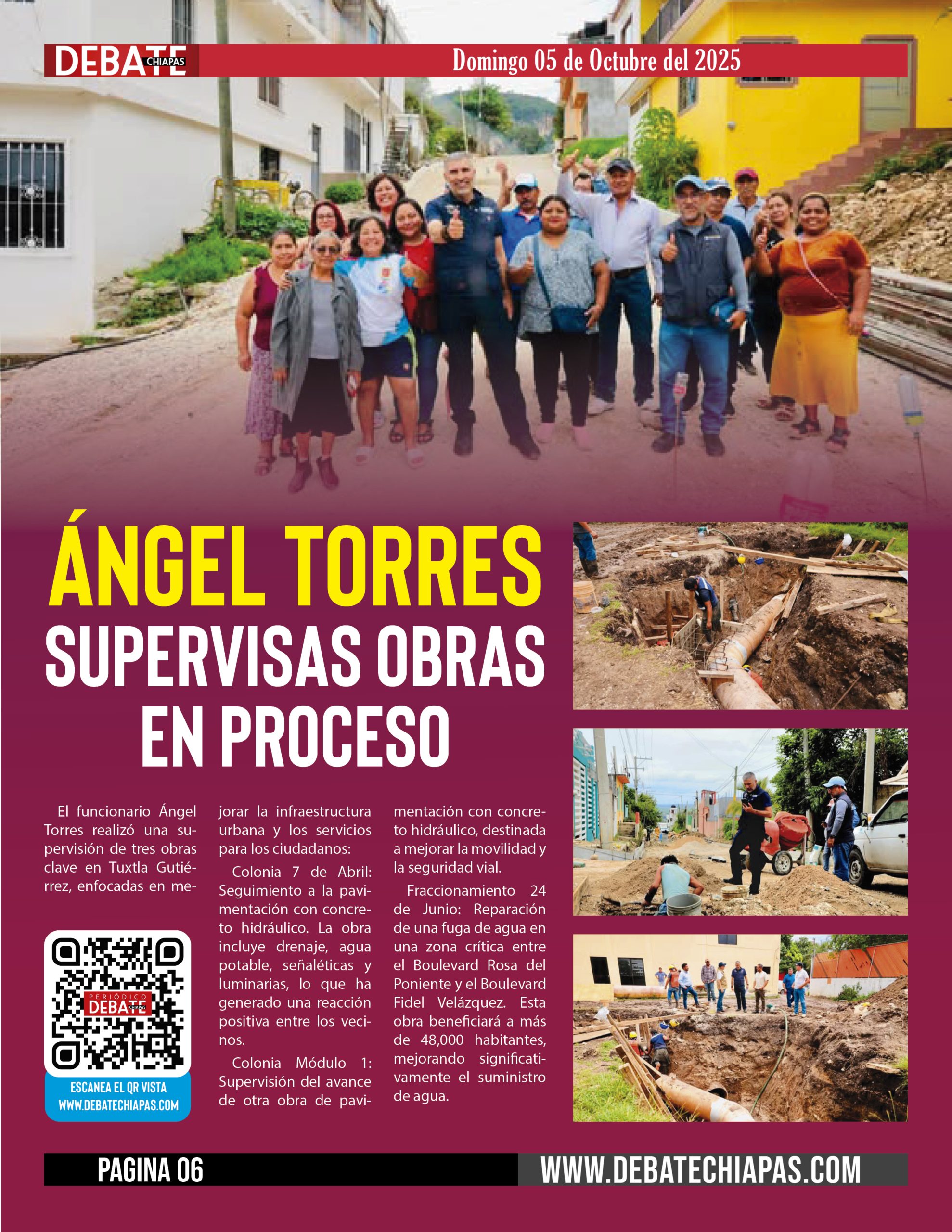 Fraccionamiento 24 de Junio: Reparación de una fuga de agua en una zona crítica entre el Boulevard Rosa del Poniente y el Boulevard Fidel Velázquez. Esta obra beneficiará a más de 48,000 habitantes, mejorando significativamente el suministro de agua.