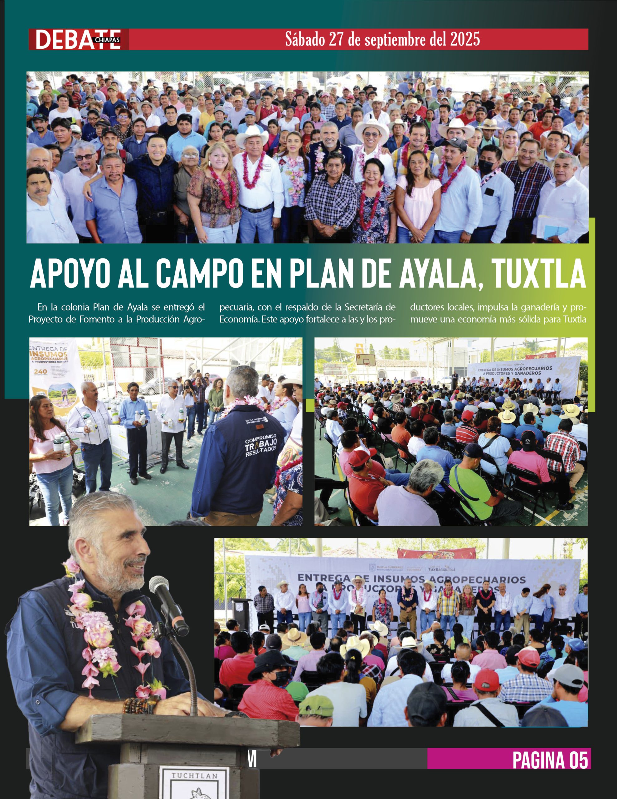 En la colonia Plan de Ayala se entregó el Proyecto de Fomento a la Producción Agropecuaria, con el respaldo de la Secretaría de Economía. Este apoyo fortalece a las y los productores locales, impulsa la ganadería y promueve una economía más sólida para Tuxtla Gutiérrez.