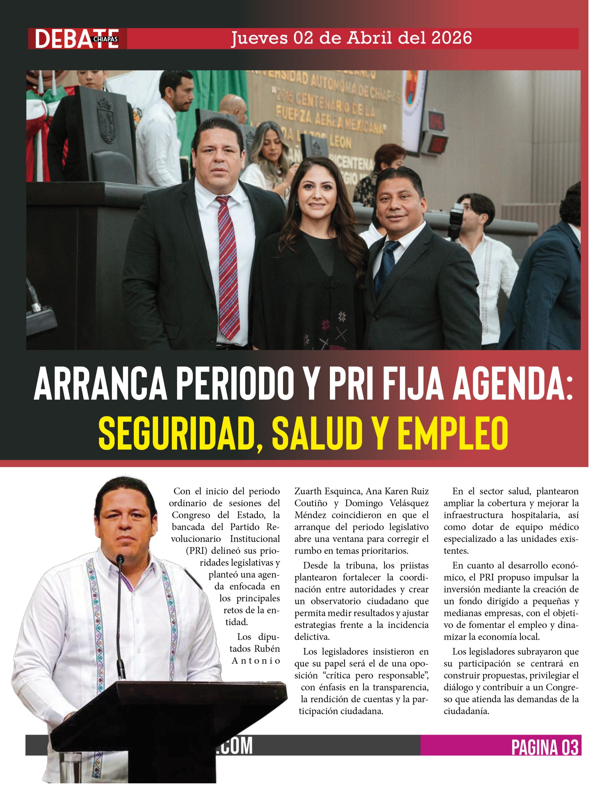 Los diputados Rubén Antonio Zuarth Esquinca, Ana Karen Ruiz Coutiño y Domingo Velásquez Méndez coincidieron en que el arranque del periodo legislativo abre una ventana para corregir el rumbo en temas prioritarios.