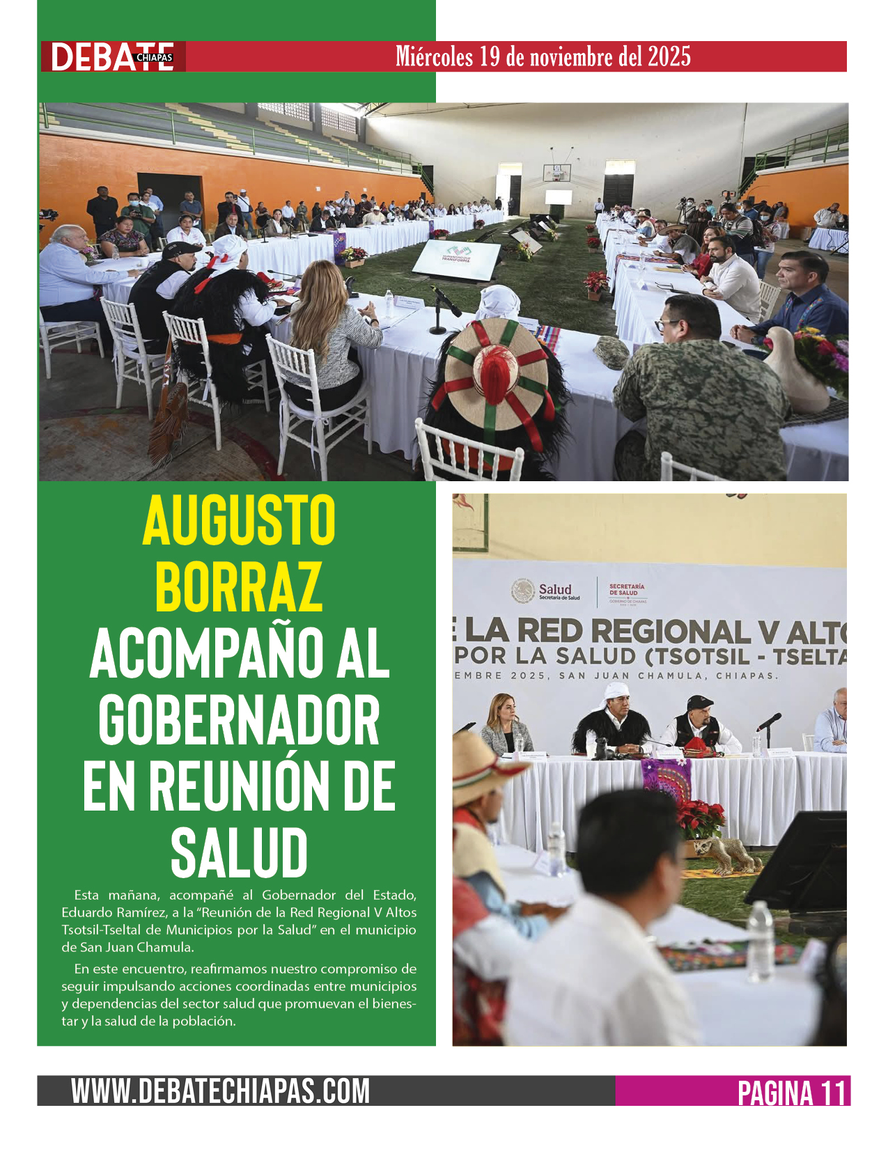 Esta mañana, acompañé al Gobernador del Estado, Eduardo Ramírez, a la «Reunión de la Red Regional V Altos Tsotsil-Tseltal de Municipios por la Salud» en el municipio de San Juan Chamula.