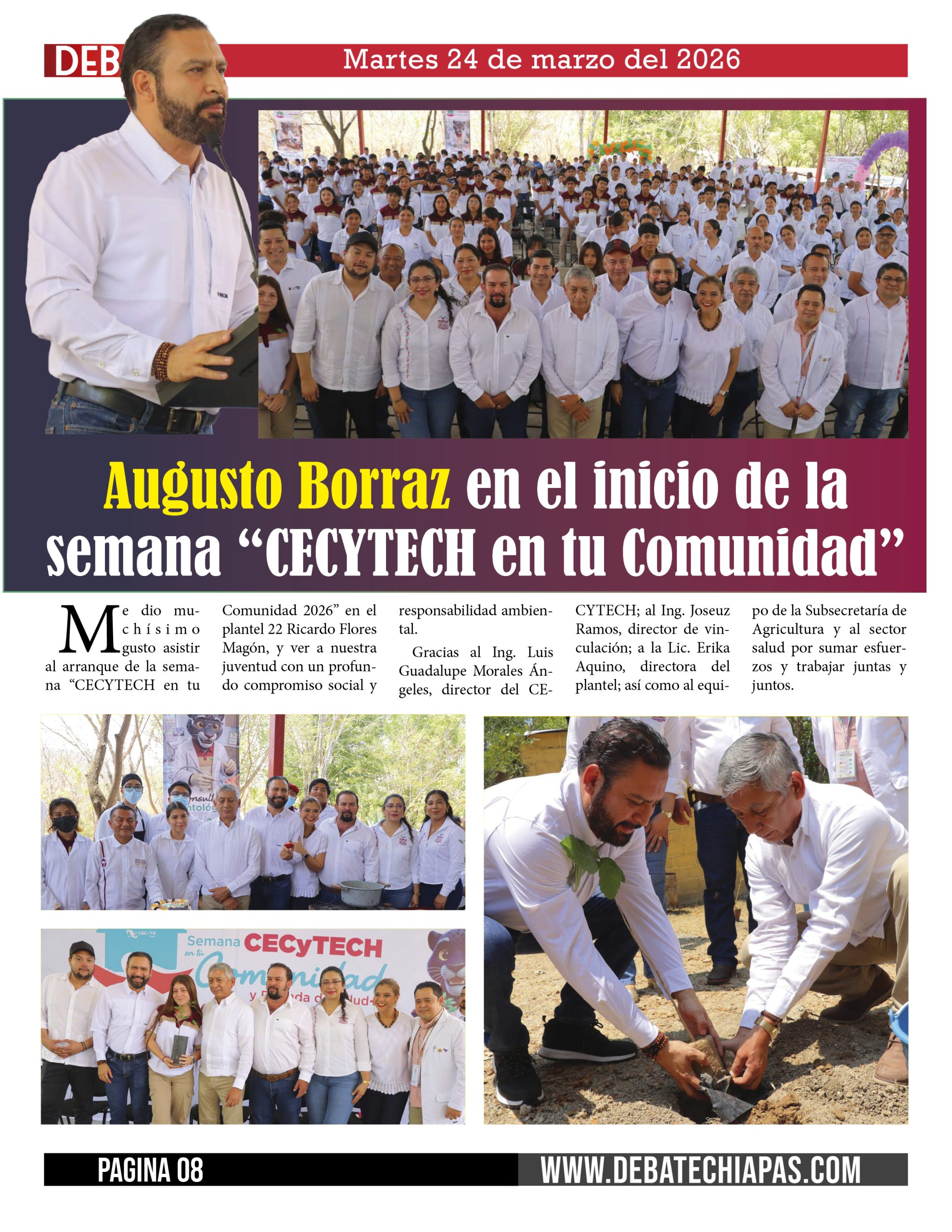 Gracias al Ing. Luis Guadalupe Morales Ángeles, director del CECYTECH; al Ing. Joseuz Ramos, director de vinculación; a la Lic. Erika Aquino, directora del plantel; así como al equipo de la Subsecretaría de Agricultura y al sector salud por sumar esfuerzos y trabajar juntas y juntos.