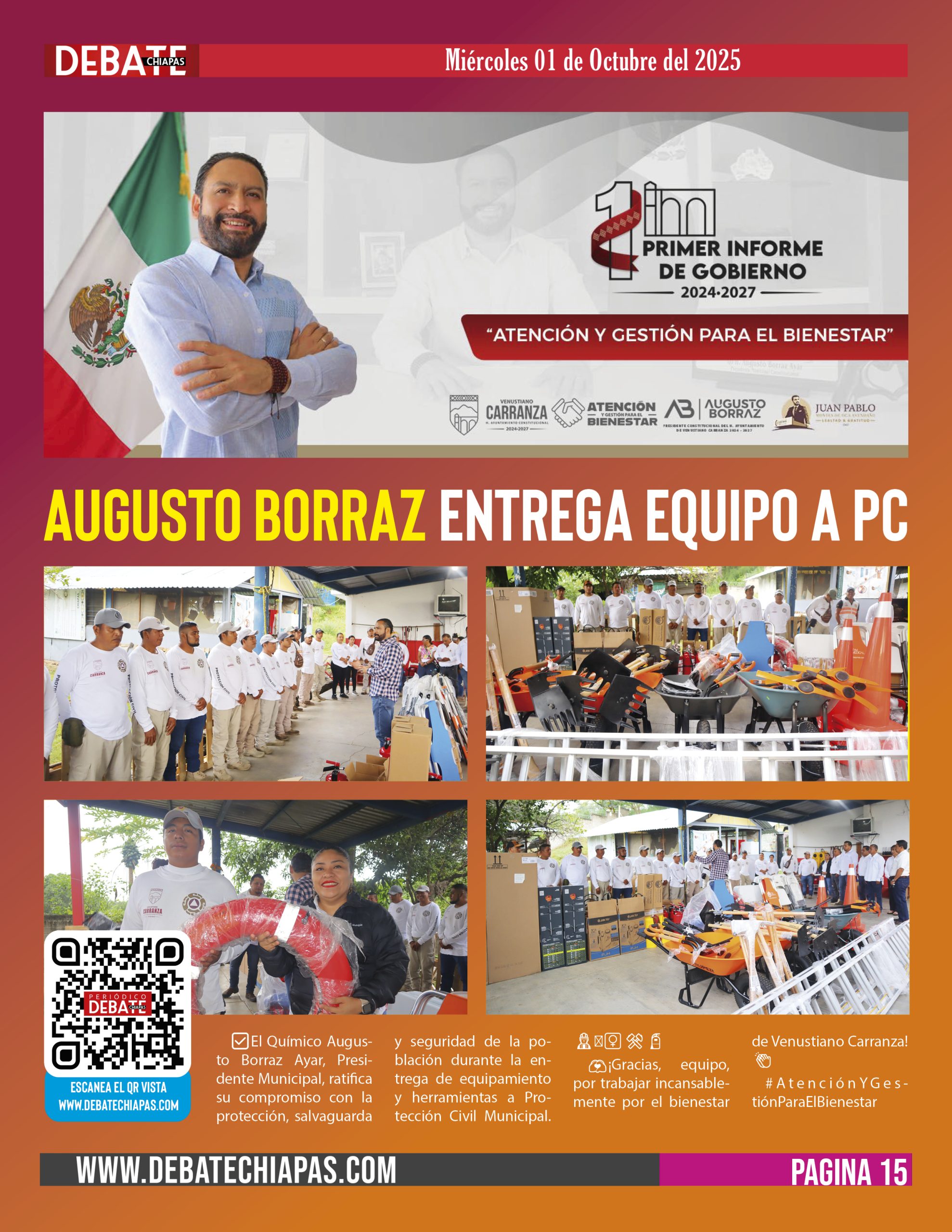 ✅El Químico Augusto Borraz Ayar, Presidente Municipal, ratifica su compromiso con la protección, salvaguarda y seguridad de la población durante la entrega de equipamiento y herramientas a Protección Civil Municipal.👷♀️⚒️🧯
