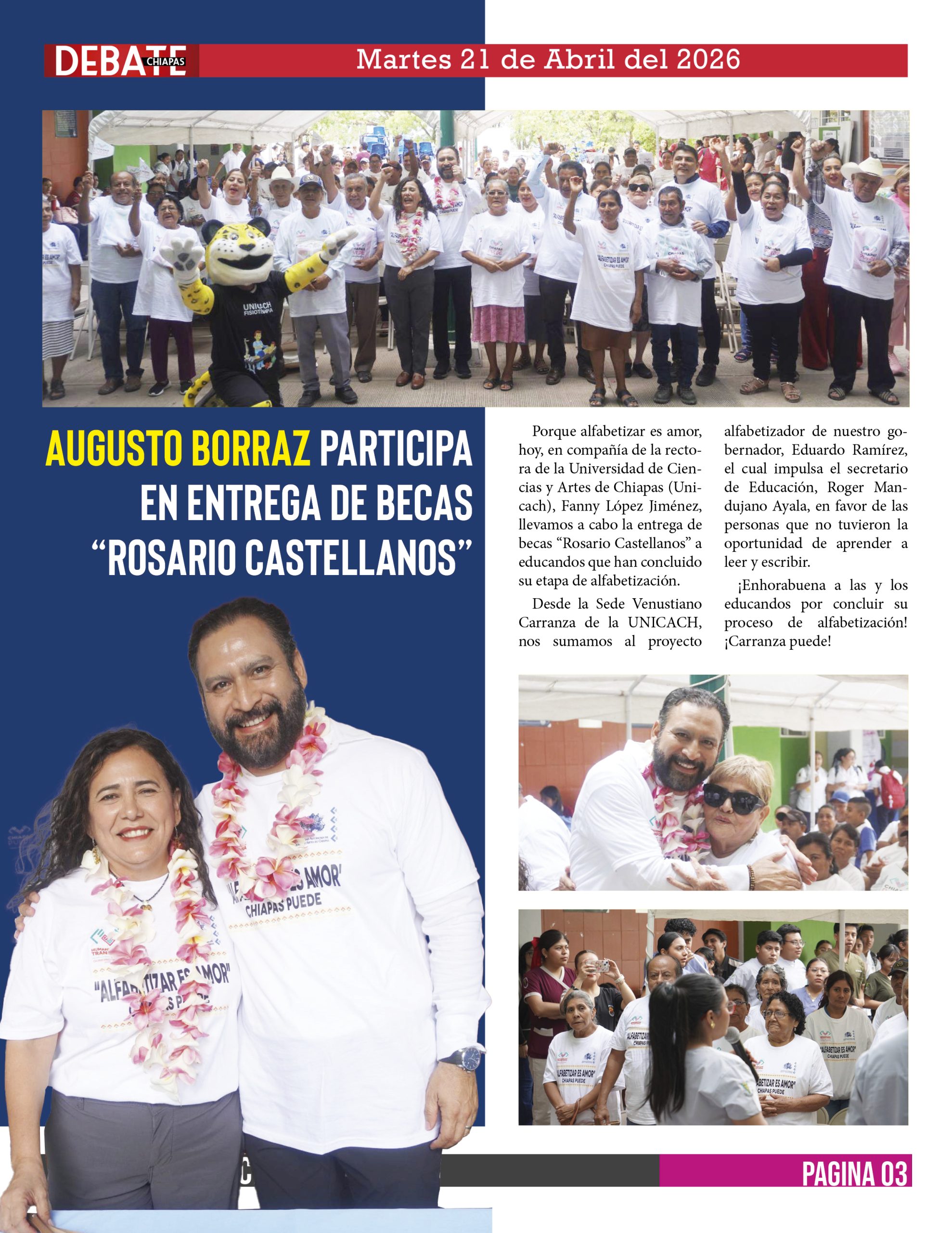 Porque alfabetizar es amor, hoy, en compañía de la rectora de la Universidad de Ciencias y Artes de Chiapas (Unicach), Fanny López Jiménez, llevamos a cabo la entrega de becas “Rosario Castellanos” a educandos que han concluido su etapa de alfabetización.