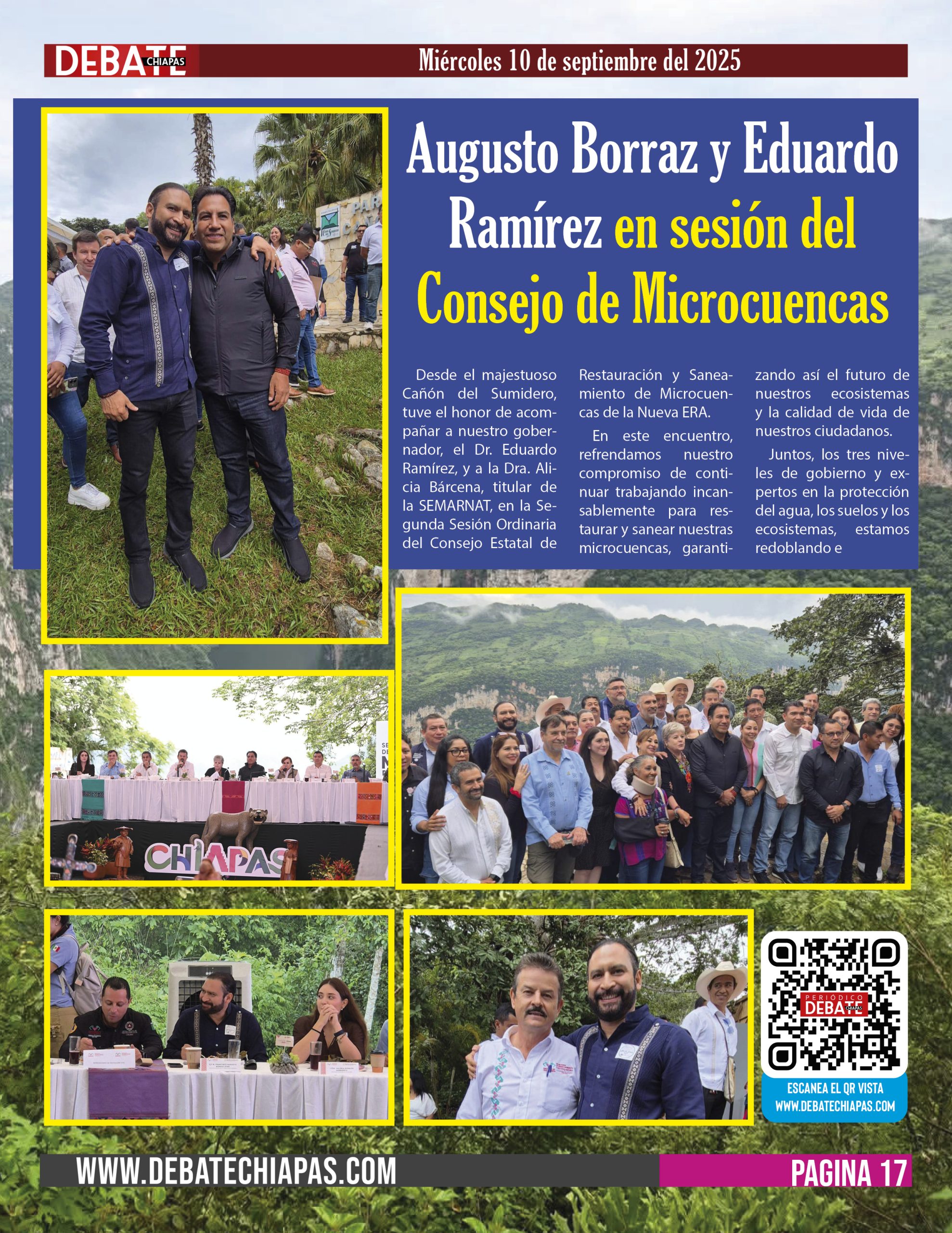 Desde el majestuoso Cañón del Sumidero, tuve el honor de acompañar a nuestro gobernador, el Dr. Eduardo Ramírez, y a la Dra. Alicia Bárcena, titular de la SEMARNAT, en la Segunda Sesión Ordinaria del Consejo Estatal de Restauración y Saneamiento de Microcuencas de la Nueva ERA.