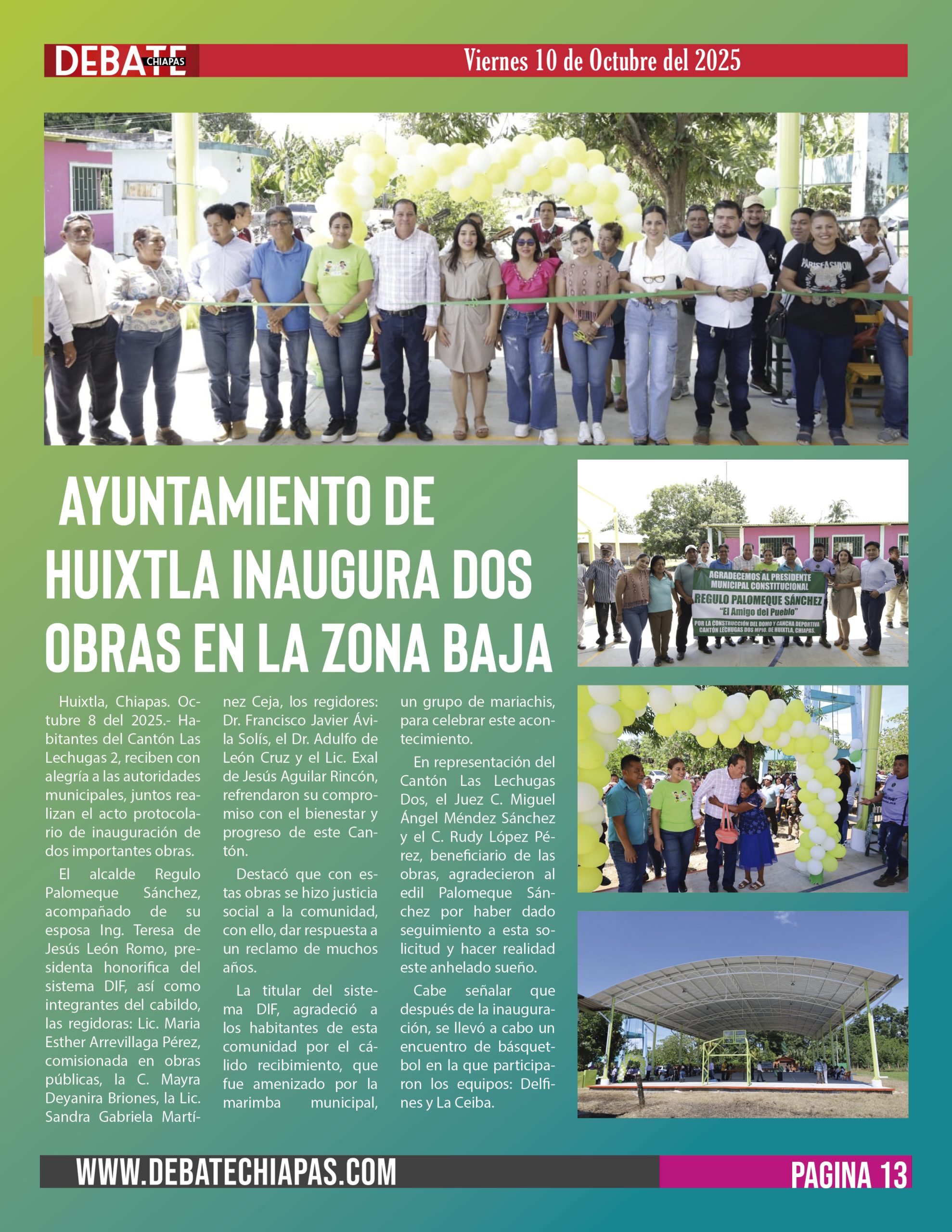 Ayuntamiento de Huixtla inaugura dos obras en la Zona Baja