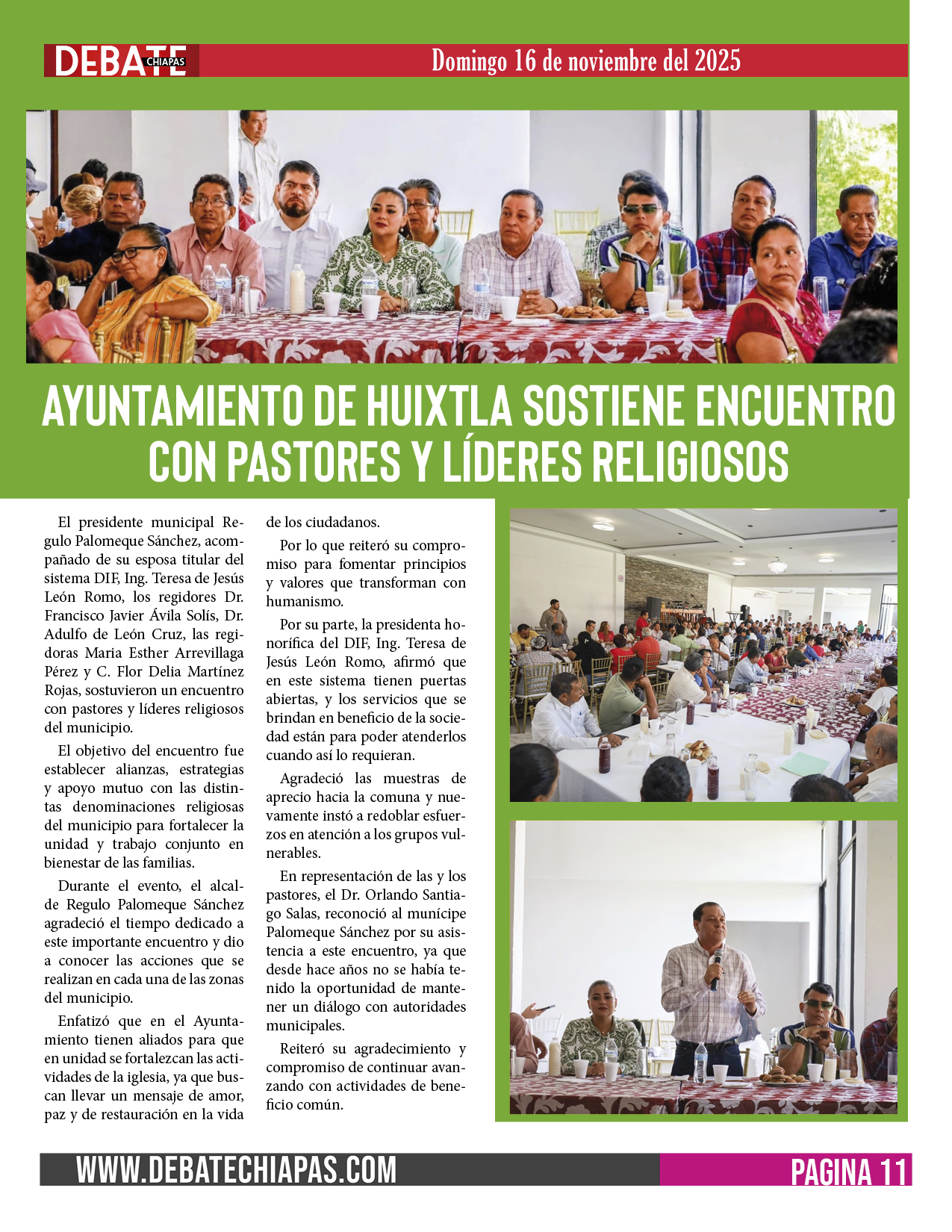 Ayuntamiento de Huixtla Sostiene Encuentro con Pastores y Líderes Religiosos