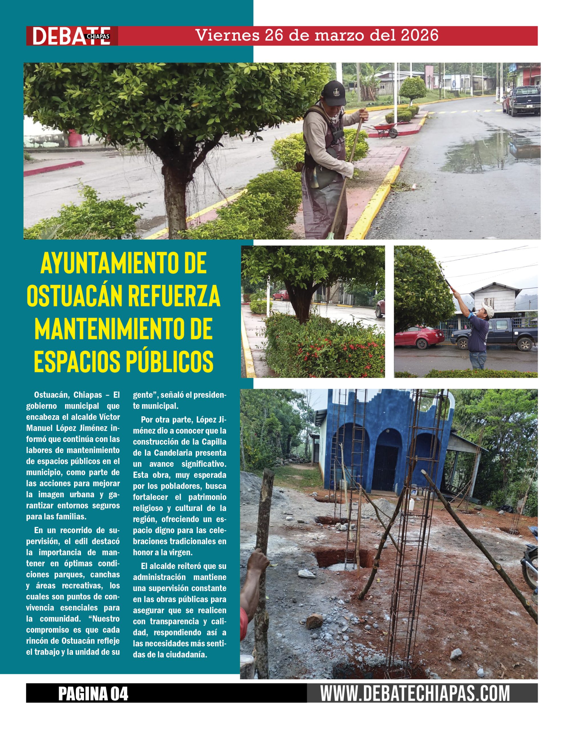 Ostuacán, Chiapas – El gobierno municipal que encabeza el alcalde Víctor Manuel López Jiménez informó que continúa con las labores de mantenimiento de espacios públicos en el municipio, como parte de las acciones para mejorar la imagen urbana y garantizar entornos seguros para las familias.