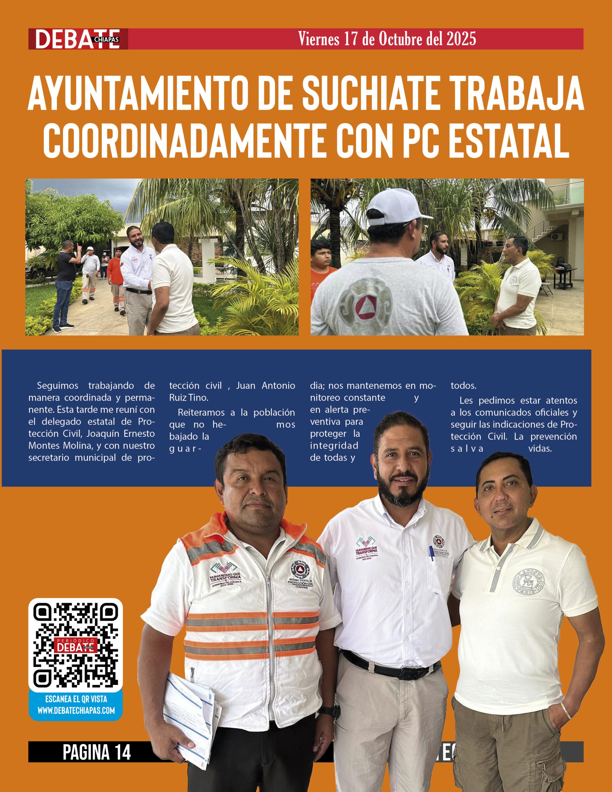 Ayuntamiento de Suchiate trabaja coordinadamente con PC Estatal