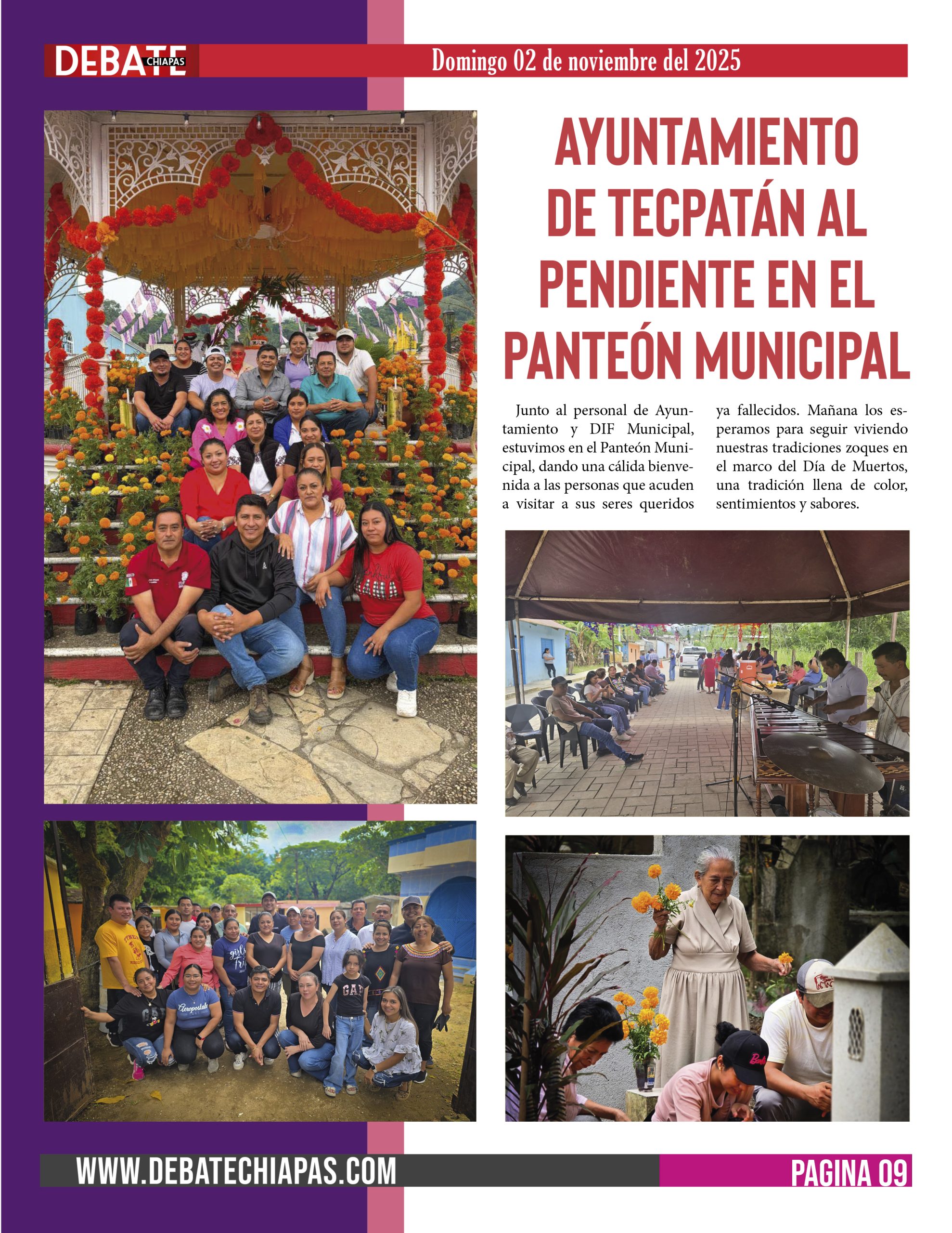 Junto al personal de Ayuntamiento y DIF Municipal, estuvimos en el Panteón Municipal, dando una cálida bienvenida a las personas que acuden a visitar a sus seres queridos ya fallecidos. Mañana los esperamos para seguir viviendo nuestras tradiciones zoques en el marco del Día de Muertos, una tradición llena de color, sentimientos y sabores.