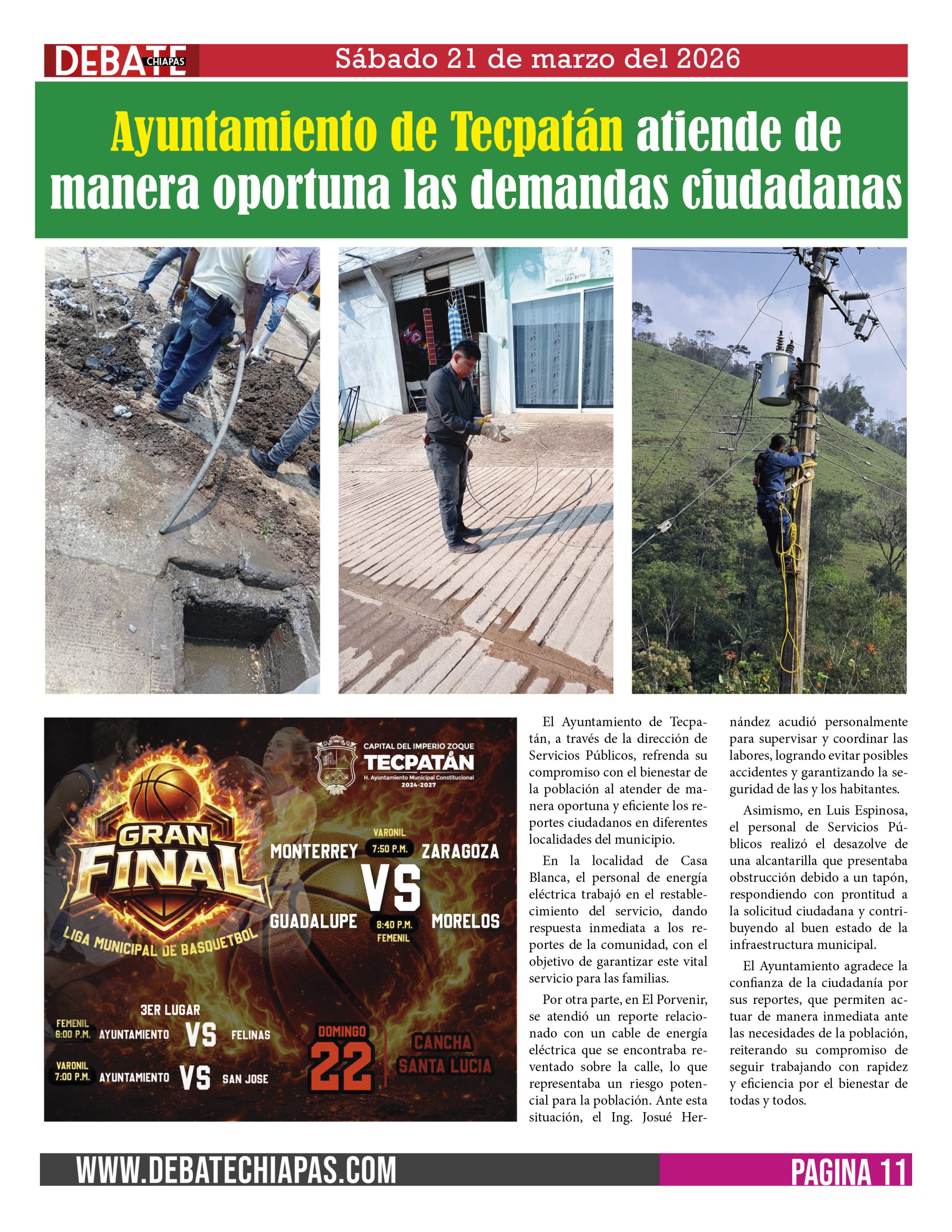 El Ayuntamiento de Tecpatán, a través de la dirección de Servicios Públicos, refrenda su compromiso con el bienestar de la población al atender de manera oportuna y eficiente los reportes ciudadanos en diferentes localidades del municipio.