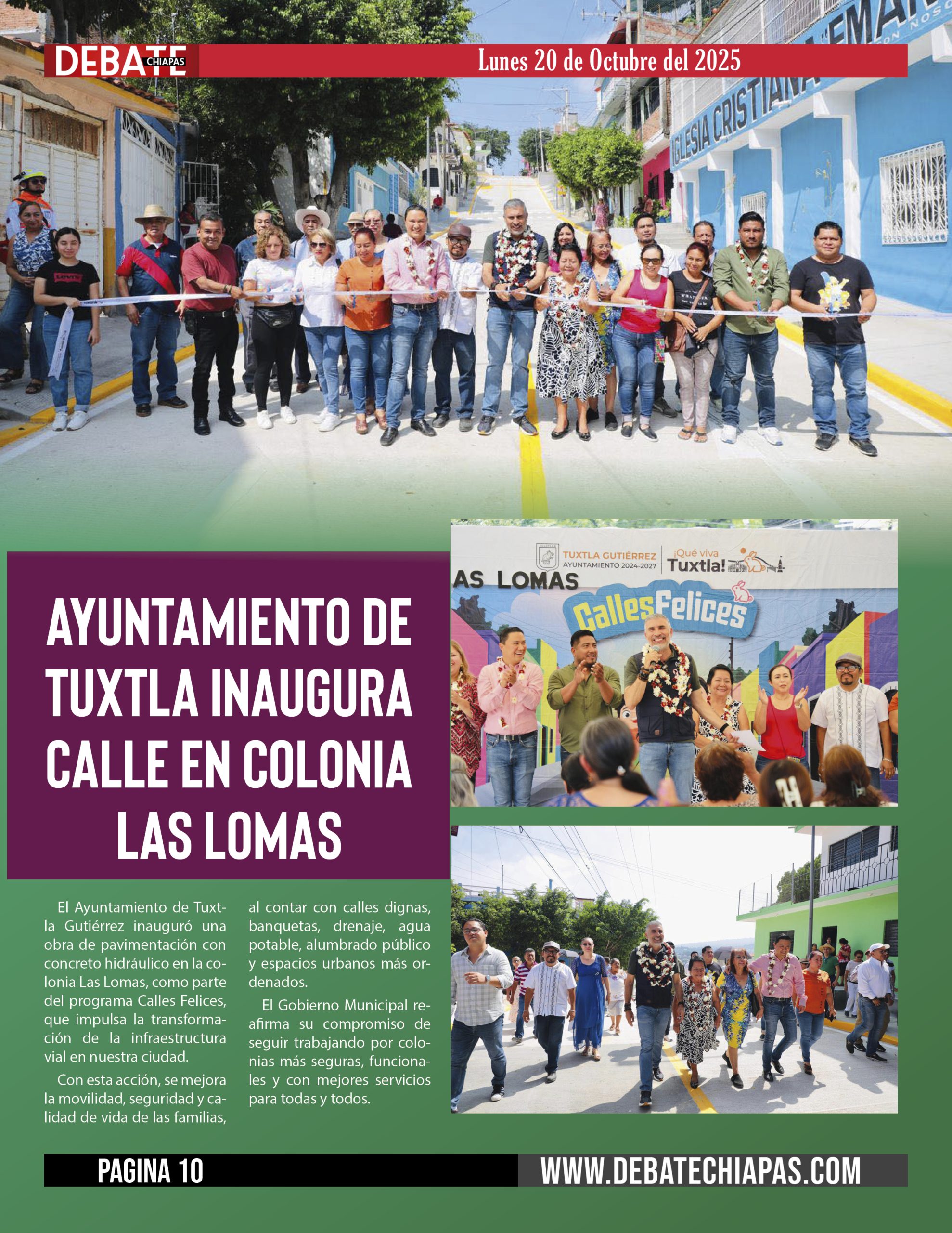 El Ayuntamiento de Tuxtla Gutiérrez inauguró una obra de pavimentación con concreto hidráulico en la colonia Las Lomas, como parte del programa Calles Felices, que impulsa la transformación de la infraestructura vial en nuestra ciudad.