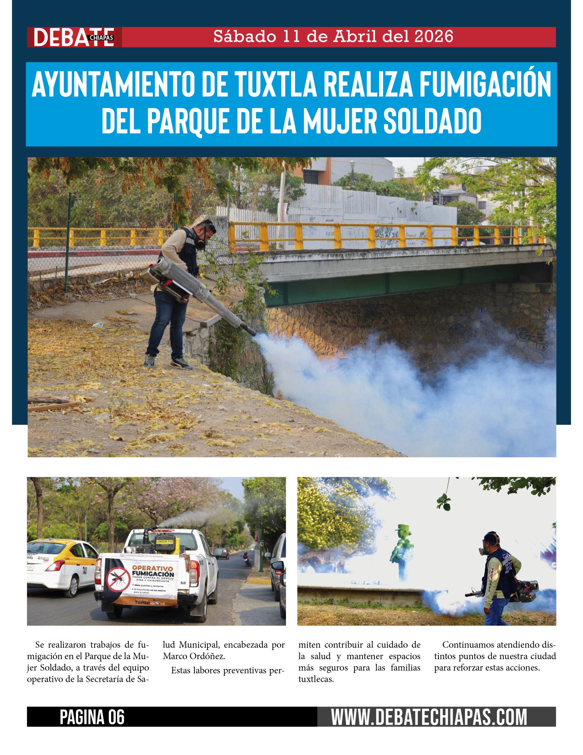 Se realizaron trabajos de fumigación en el Parque de la Mujer Soldado, a través del equipo operativo de la Secretaría de Salud Municipal, encabezada por Marco Ordóñez.