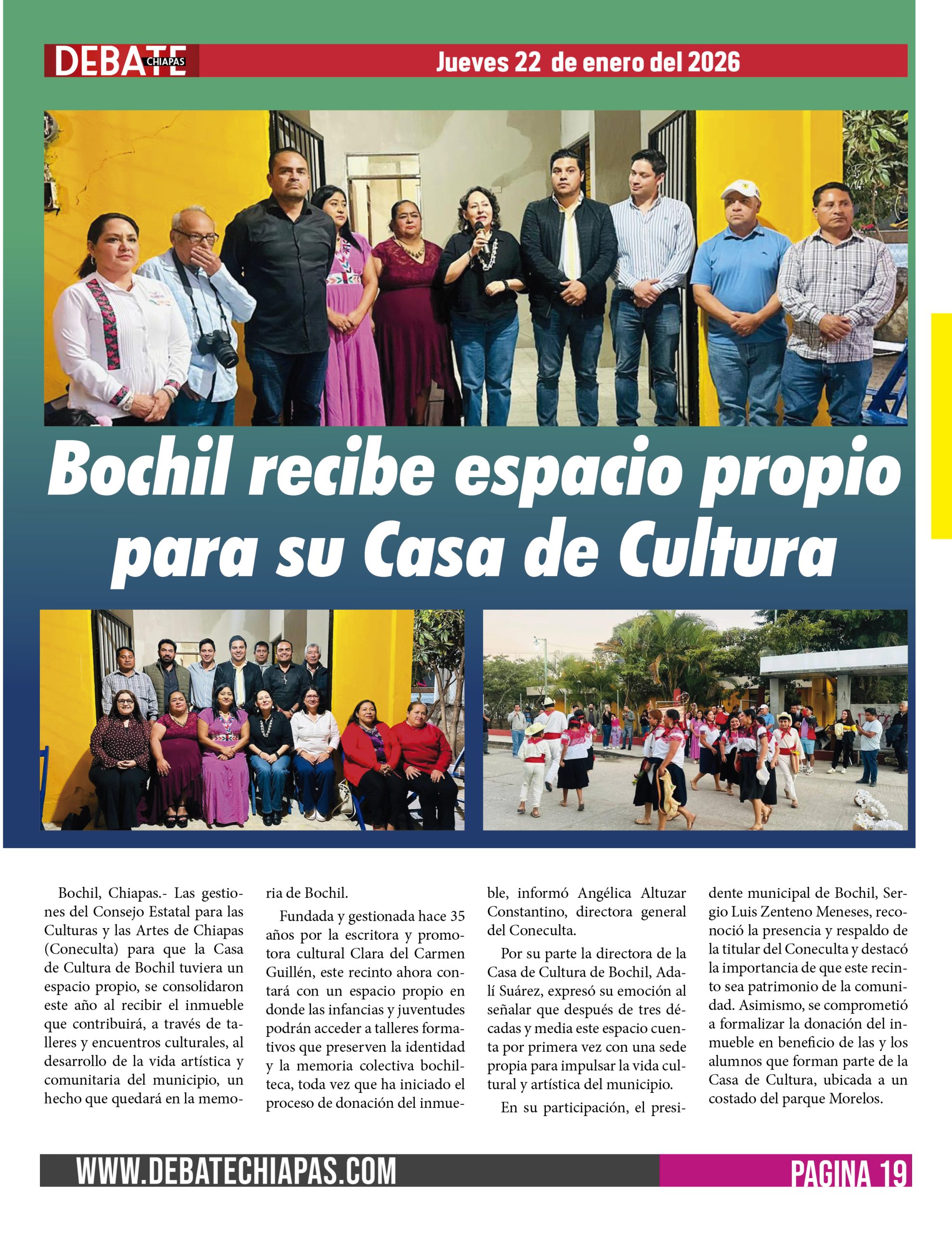 Por su parte la directora de la Casa de Cultura de Bochil, Adalí Suárez, expresó su emoción al señalar que después de tres décadas y media este espacio cuenta por primera vez con una sede propia para impulsar la vida cultural y artística del municipio.