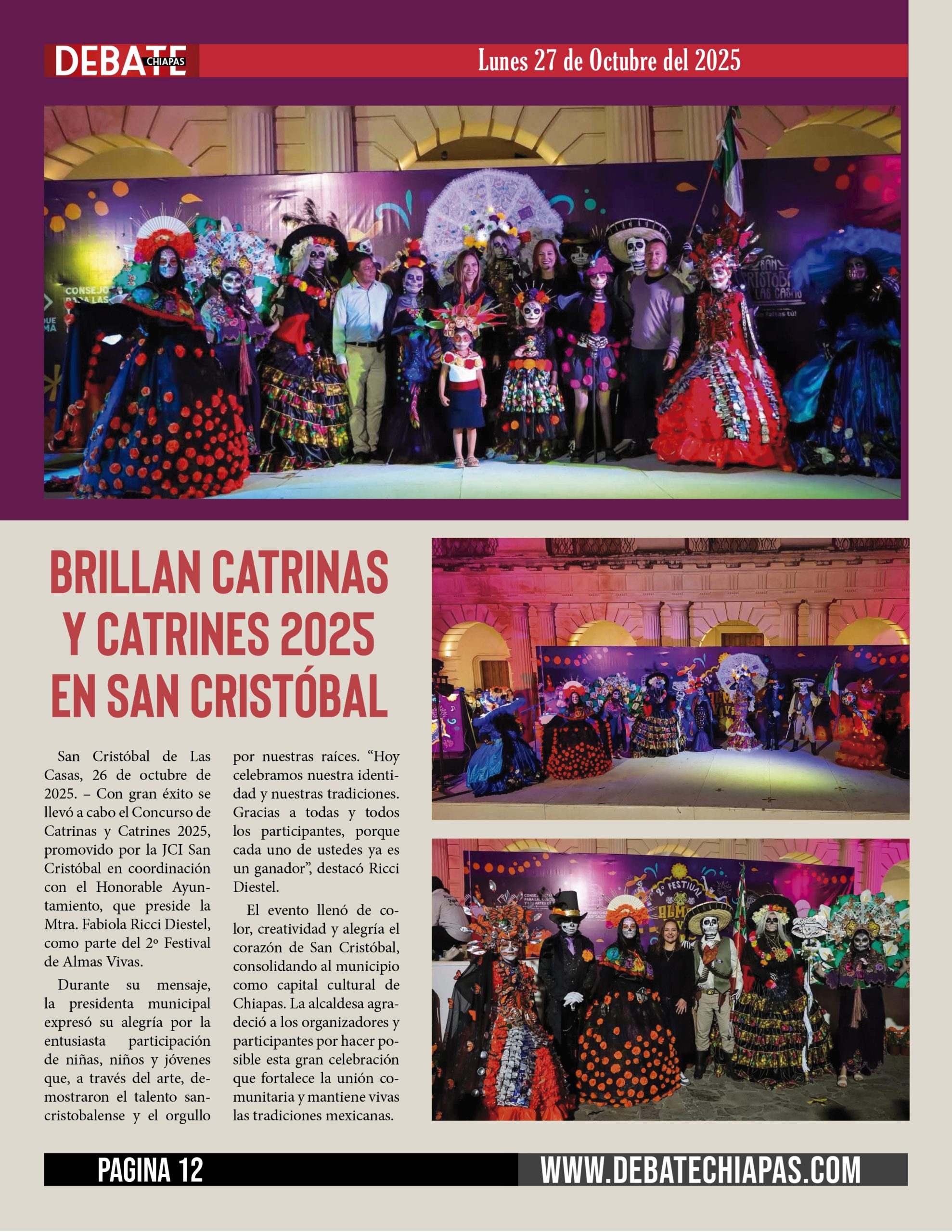 El evento llenó de color, creatividad y alegría el corazón de San Cristóbal, consolidando al municipio como capital cultural de Chiapas. La alcaldesa agradeció a los organizadores y participantes por hacer posible esta gran celebración que fortalece la unión comunitaria y mantiene vivas las tradiciones mexicanas.