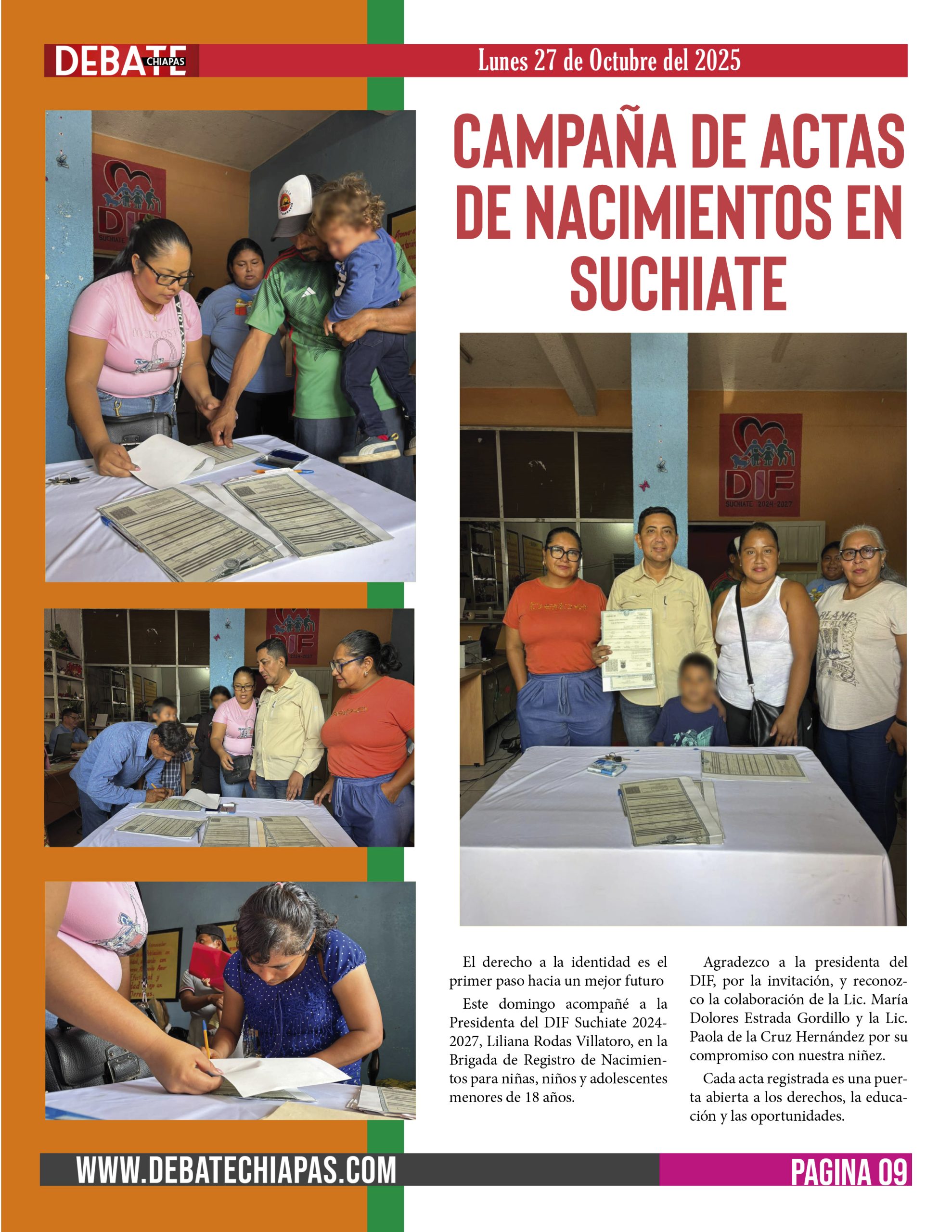 Este domingo acompañé a la Presidenta del DIF Suchiate 2024-2027, Liliana Rodas Villatoro, en la Brigada de Registro de Nacimientos para niñas, niños y adolescentes menores de 18 años.