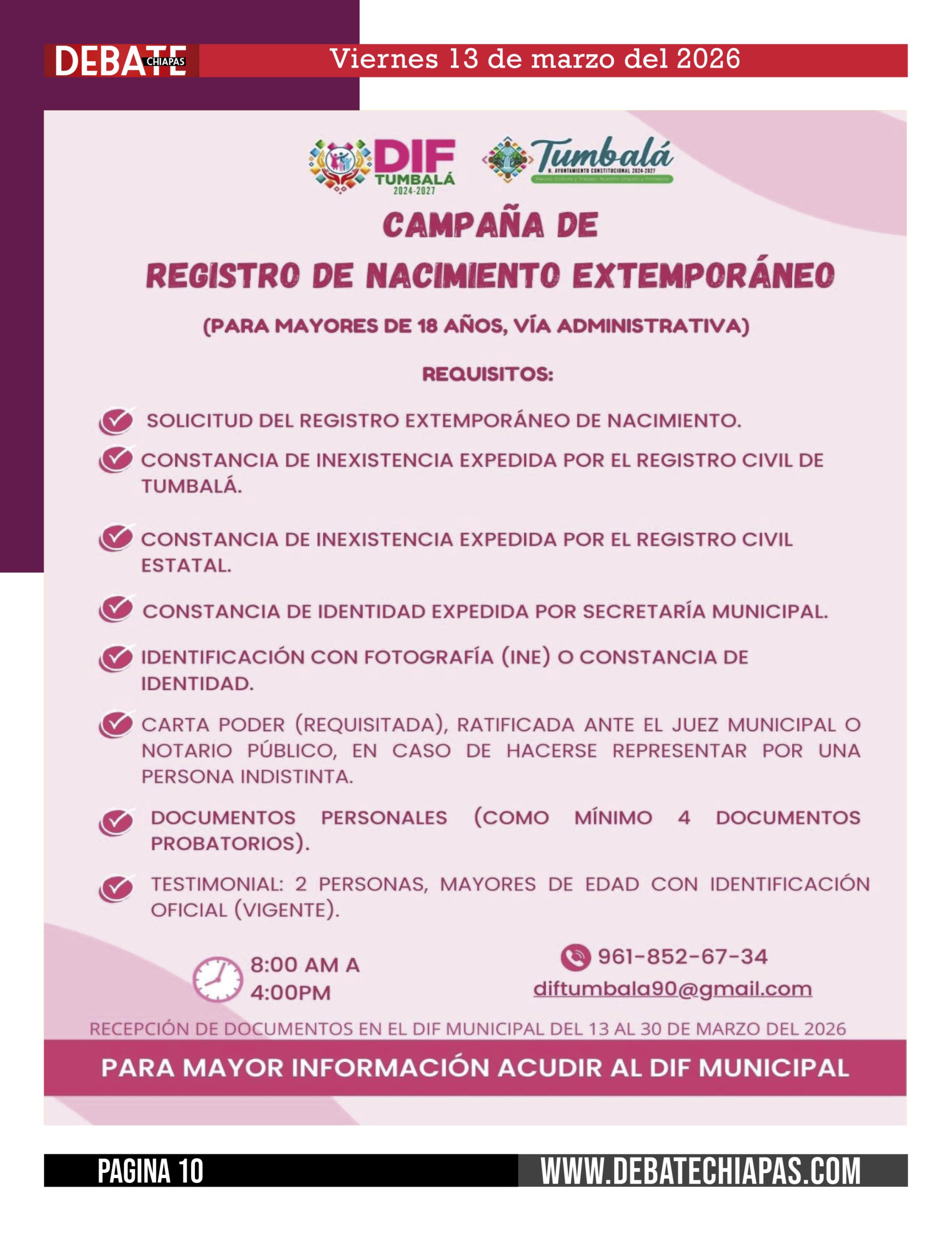Te invitamos a participar en esta campaña para realizar tu registro de nacimiento y garantizar tu derecho a la identidad.