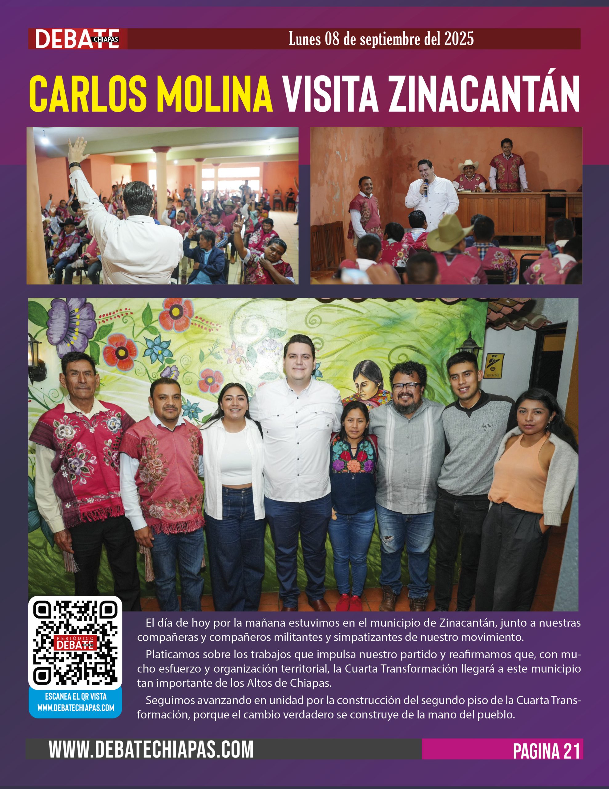 El día de hoy por la mañana estuvimos en el municipio de Zinacantán, junto a nuestras compañeras y compañeros militantes y simpatizantes de nuestro movimiento.