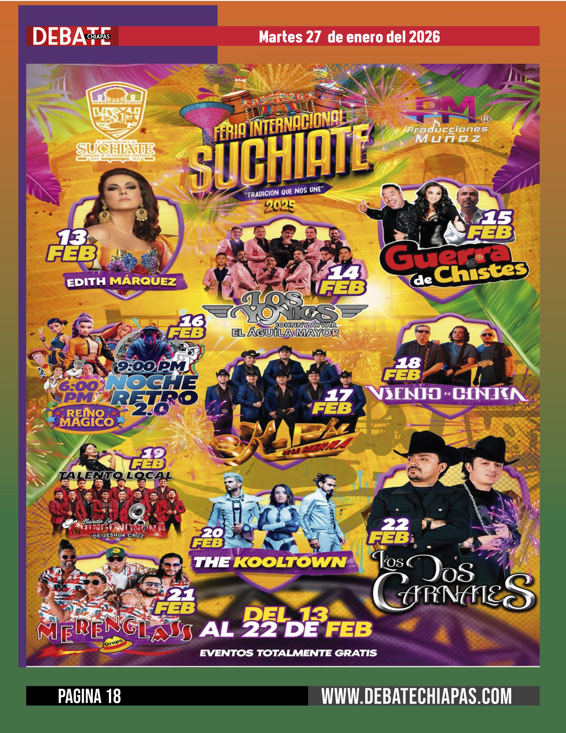 Este 2026, Suchiate se viste de fiesta con artistas de primer nivel, espectáculos para toda la familia, cultura, gastronomía y nuestras tradiciones, en un ambiente de convivencia, identidad y diversión para locales y visitantes.