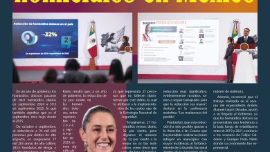 En un año de gobierno, los homicidios dolosos pasaron de 86.9 homicidios diarios en septiembre 2024 a 59.5 en septiembre…