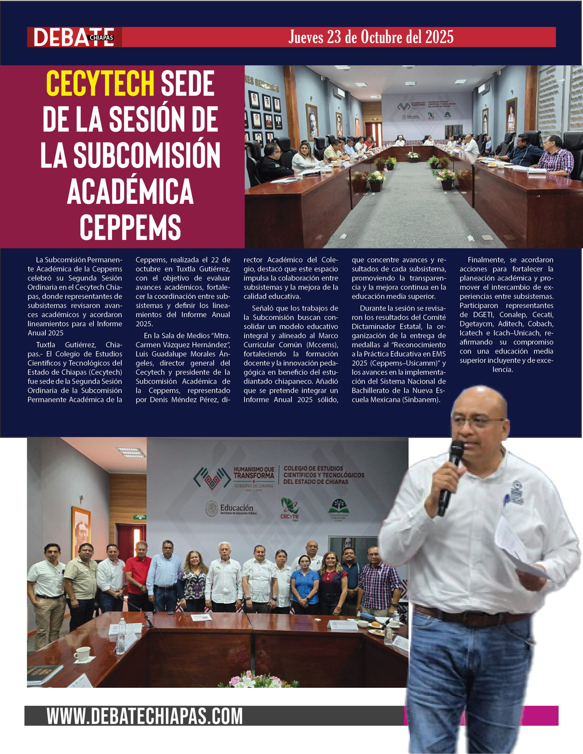 - La Subcomisión Permanente Académica de la Ceppems celebró su Segunda Sesión Ordinaria en el Cecytech Chiapas, donde representantes de subsistemas revisaron avances académicos y acordaron lineamientos para el Informe Anual 2025