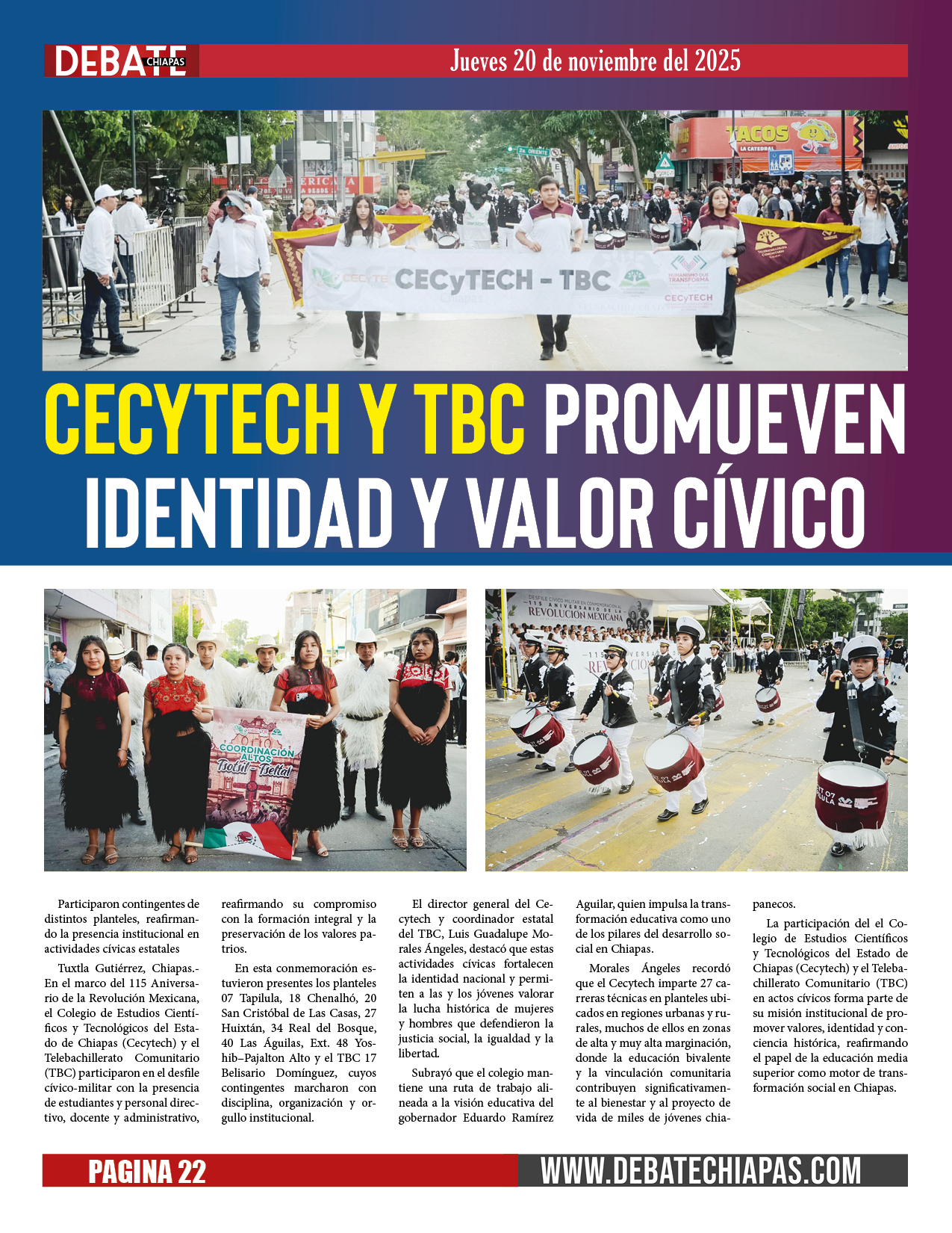 La participación del el Colegio de Estudios Científicos y Tecnológicos del Estado de Chiapas (Cecytech) y el Telebachillerato Comunitario (TBC) en actos cívicos forma parte de su misión institucional de promover valores, identidad y conciencia histórica, reafirmando el papel de la educación media superior como motor de transformación social en Chiapas.
