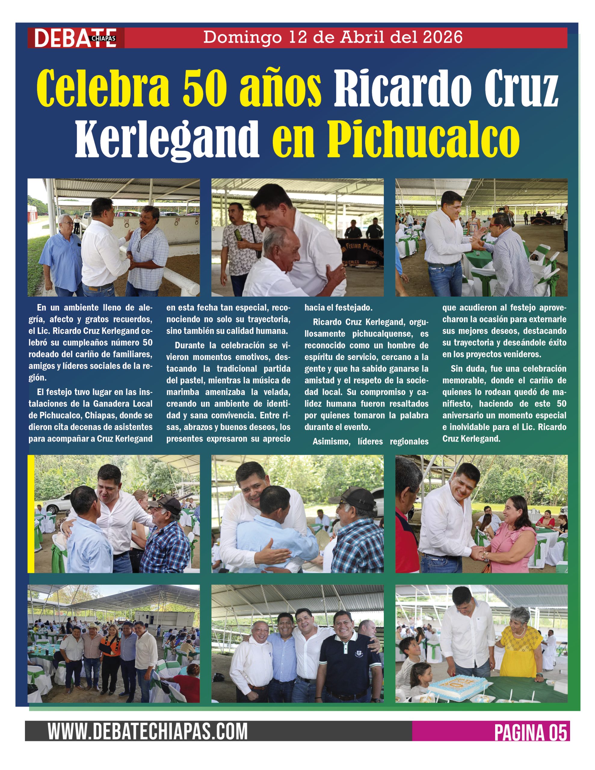 El festejo tuvo lugar en las instalaciones de la Ganadera Local de Pichucalco, Chiapas, donde se dieron cita decenas de asistentes para acompañar a Cruz Kerlegand en esta fecha tan especial, reconociendo no solo su trayectoria, sino también su calidad humana.