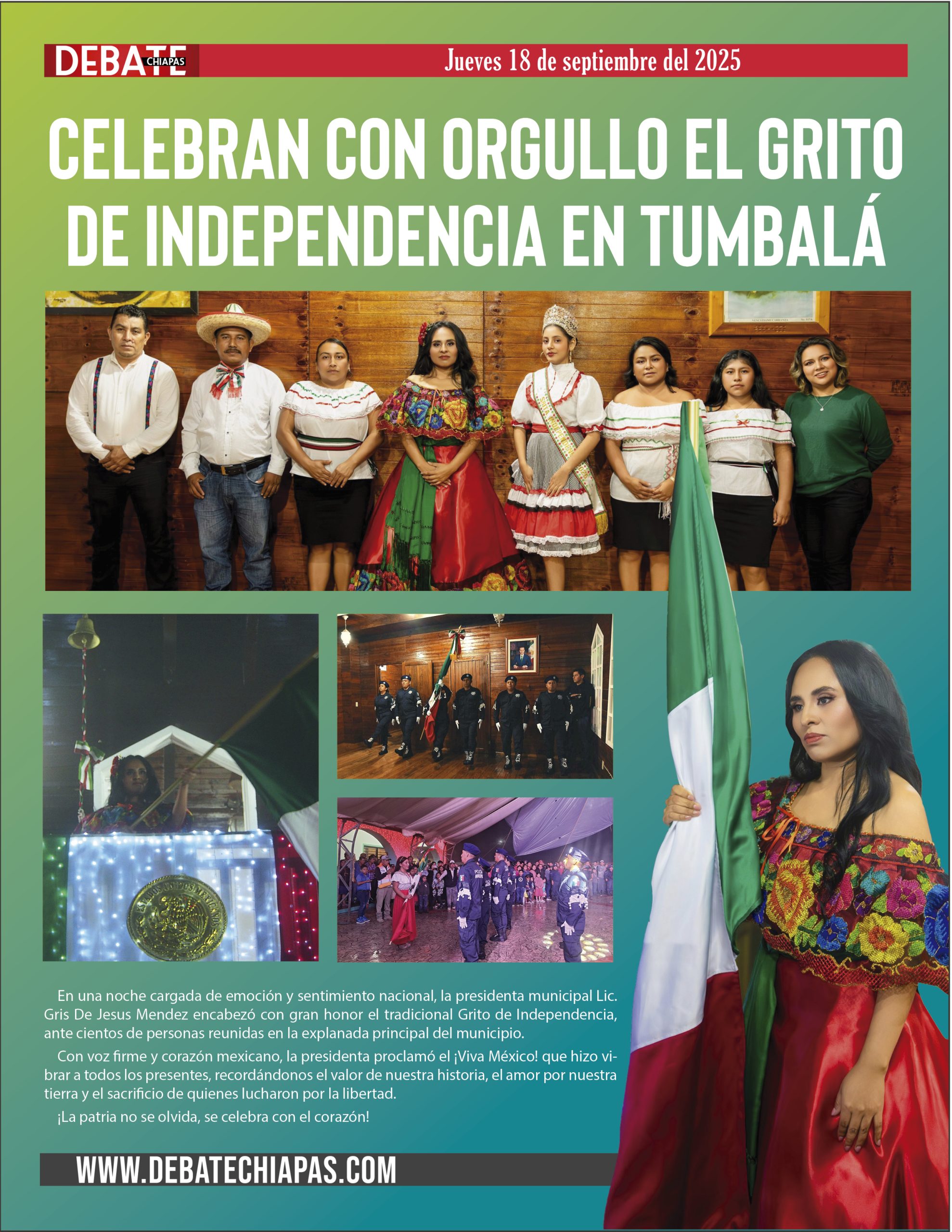 En una noche cargada de emoción y sentimiento nacional, la presidenta municipal Lic. Gris De Jesus Mendez encabezó con gran honor el tradicional Grito de Independencia, ante cientos de personas reunidas en la explanada principal del municipio.