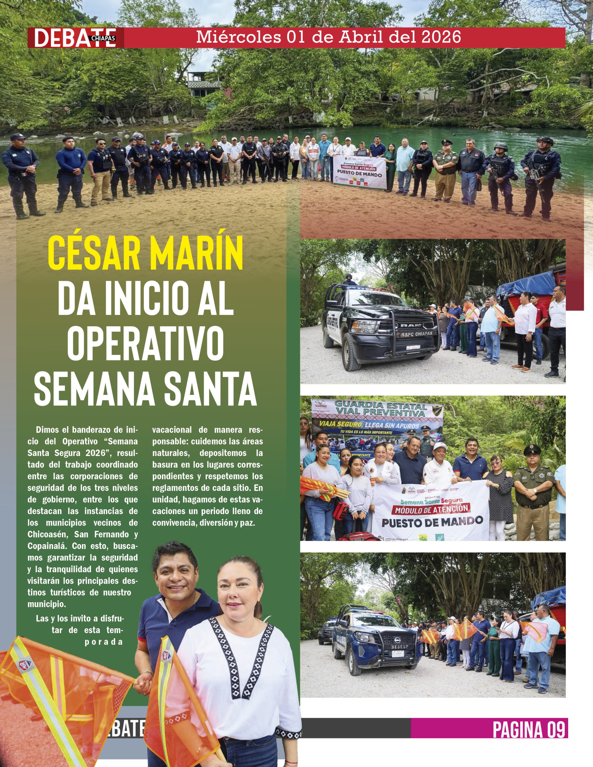 Dimos el banderazo de inicio del Operativo “Semana Santa Segura 2026”, resultado del trabajo coordinado entre las corporaciones de seguridad de los tres niveles de gobierno, entre los que destacan las instancias de los municipios vecinos de Chicoasén, San Fernando y Copainalá. Con esto, buscamos garantizar la seguridad y la tranquilidad de quienes visitarán los principales destinos turísticos de nuestro municipio.