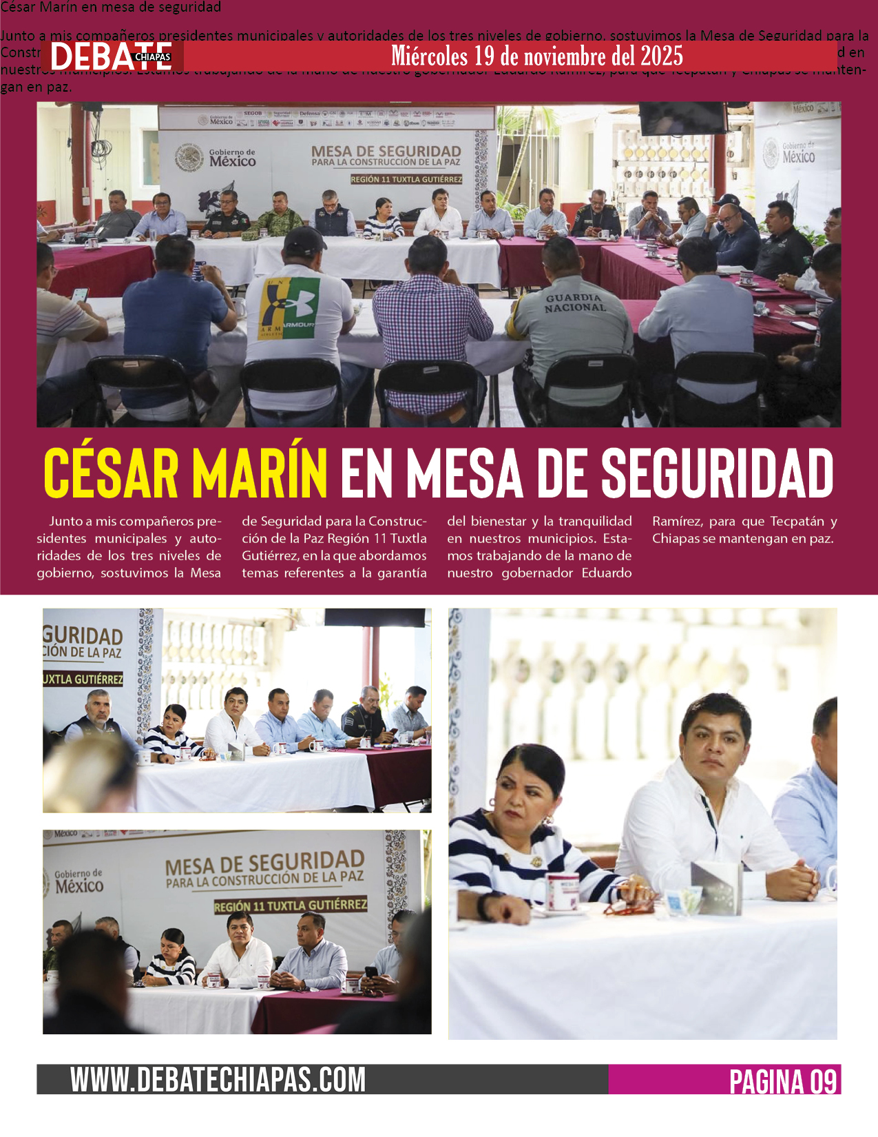 Junto a mis compañeros presidentes municipales y autoridades de los tres niveles de gobierno, sostuvimos la Mesa de Seguridad para la Construcción de la Paz Región 11 Tuxtla Gutiérrez, en la que abordamos temas referentes a la garantía del bienestar y la tranquilidad en nuestros municipios. Estamos trabajando de la mano de nuestro gobernador Eduardo Ramírez, para que Tecpatán y Chiapas se mantengan en paz.