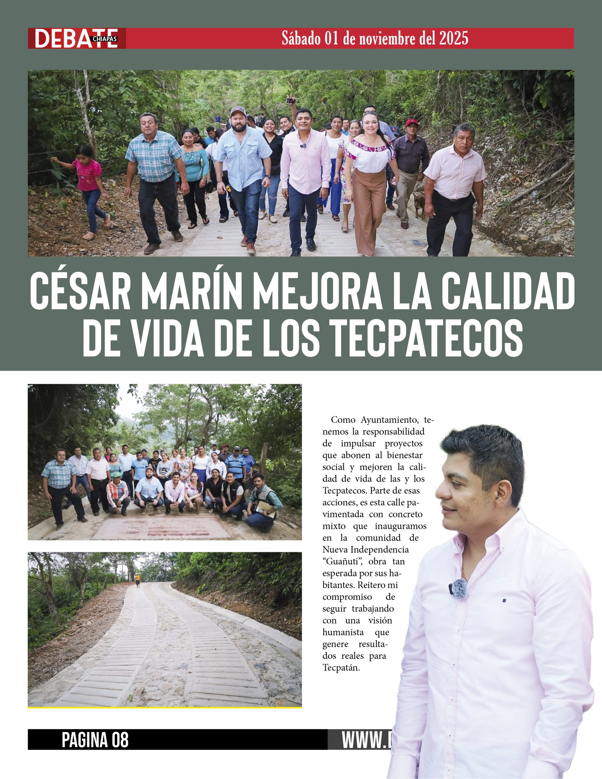 Como Ayuntamiento, tenemos la responsabilidad de impulsar proyectos que abonen al bienestar social y mejoren la calidad de vida de las y los Tecpatecos. Parte de esas acciones, es esta calle pavimentada con concreto mixto que inauguramos en la comunidad de Nueva Independencia «Guañuti», obra tan esperada por sus habitantes. Reitero mi compromiso de seguir trabajando con una visión humanista que genere resultados reales para Tecpatán.