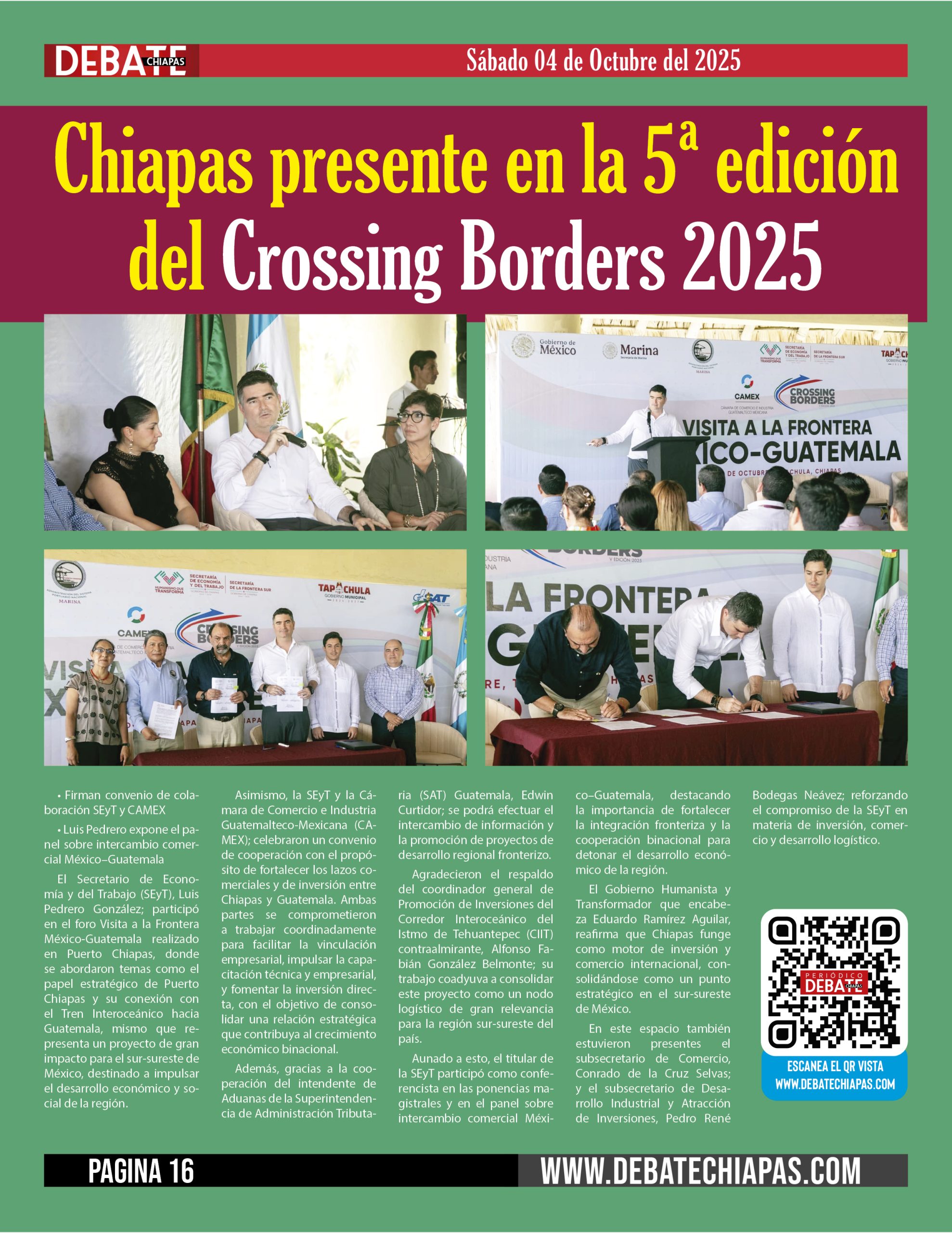 El Gobierno Humanista y Transformador que encabeza Eduardo Ramírez Aguilar, reafirma que Chiapas funge como motor de inversión y comercio internacional, consolidándose como un punto estratégico en el sur-sureste de México.