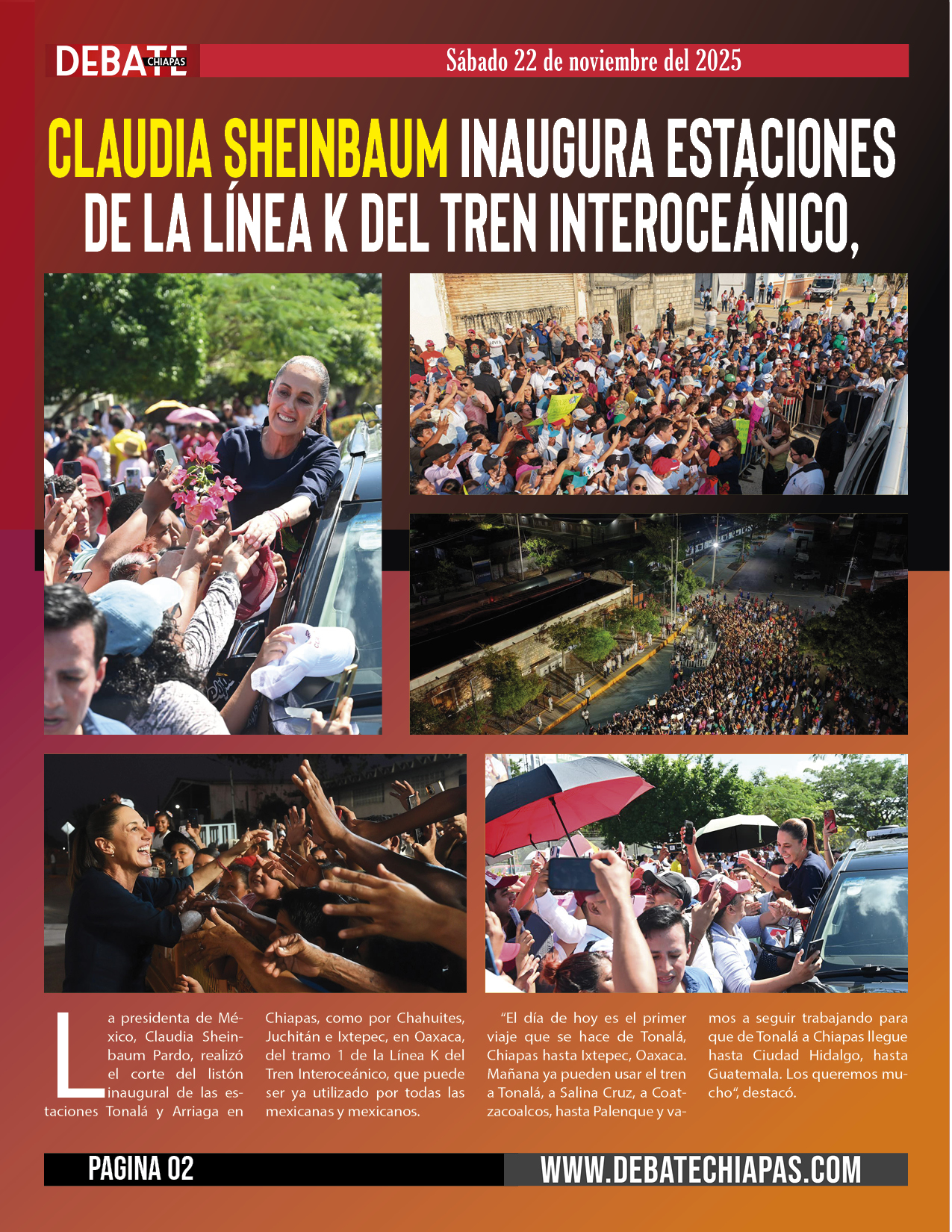 La presidenta de México, Claudia Sheinbaum Pardo, realizó el corte del listón inaugural de las estaciones Tonalá y Arriaga en Chiapas, como por Chahuites, Juchitán e Ixtepec, en Oaxaca, del tramo 1 de la Línea K del Tren Interoceánico, que puede ser ya utilizado por todas las mexicanas y mexicanos.