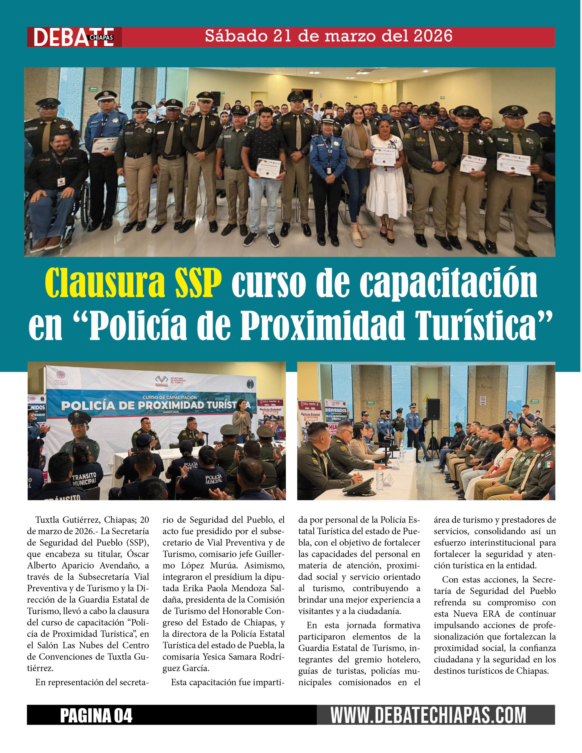 Con estas acciones, la Secretaría de Seguridad del Pueblo refrenda su compromiso con esta Nueva ERA de continuar impulsando acciones de profesionalización que fortalezcan la proximidad social, la confianza ciudadana y la seguridad en los destinos turísticos de Chiapas.
