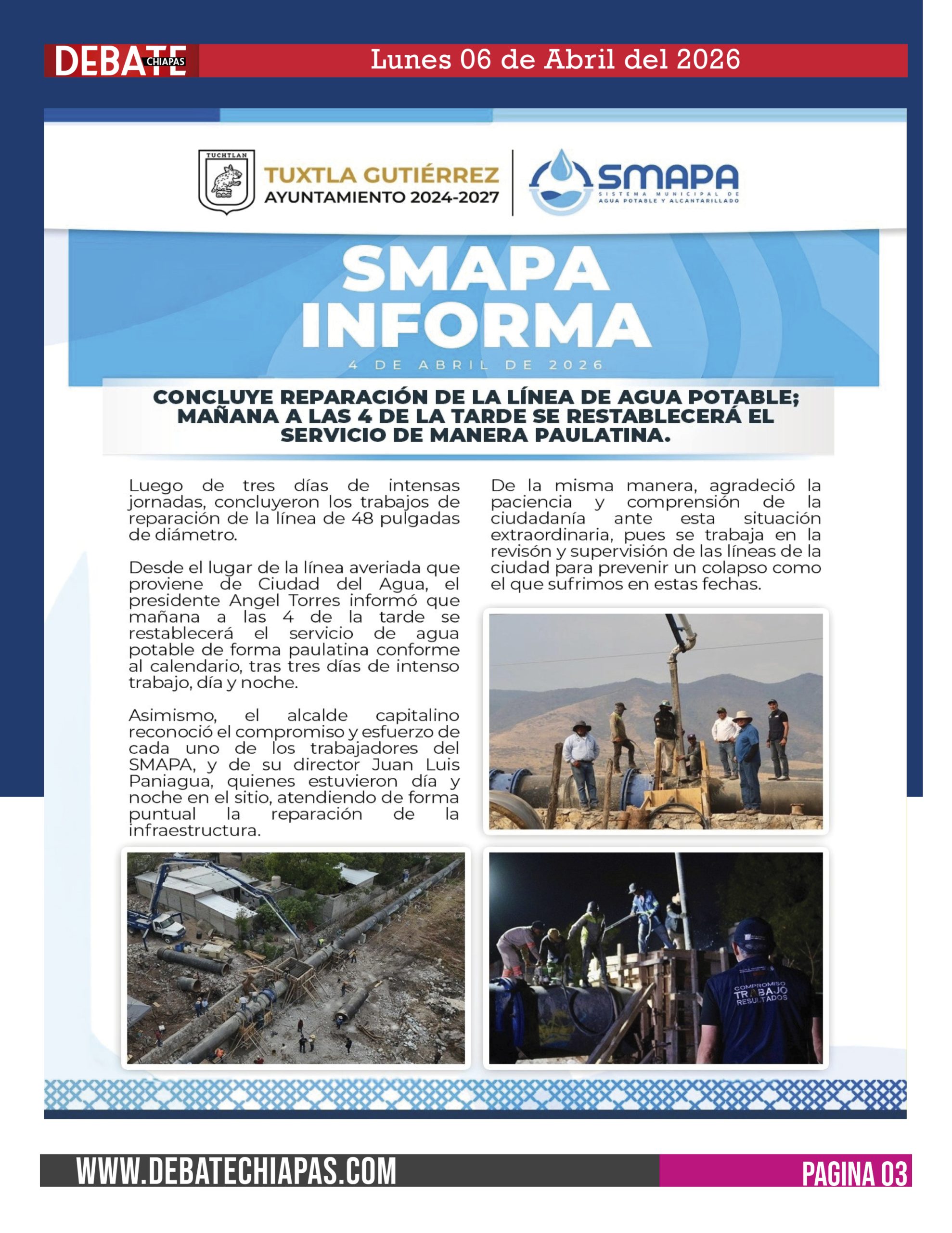 Inicio/General/Concluye reparación de la línea de agua potable en Tuxtla General Concluye reparación de la línea de agua potable en Tuxtla Redacción Debate ChiapasHace 2 semanas 33 Menos de un minuto Compartir Redacción Debate ChiapasHace 2 semanas 33 Menos de un minuto Facebook X LinkedIn Tumblr Pinterest Reddit VKontakte Compartir por correo electrónico Imprimir