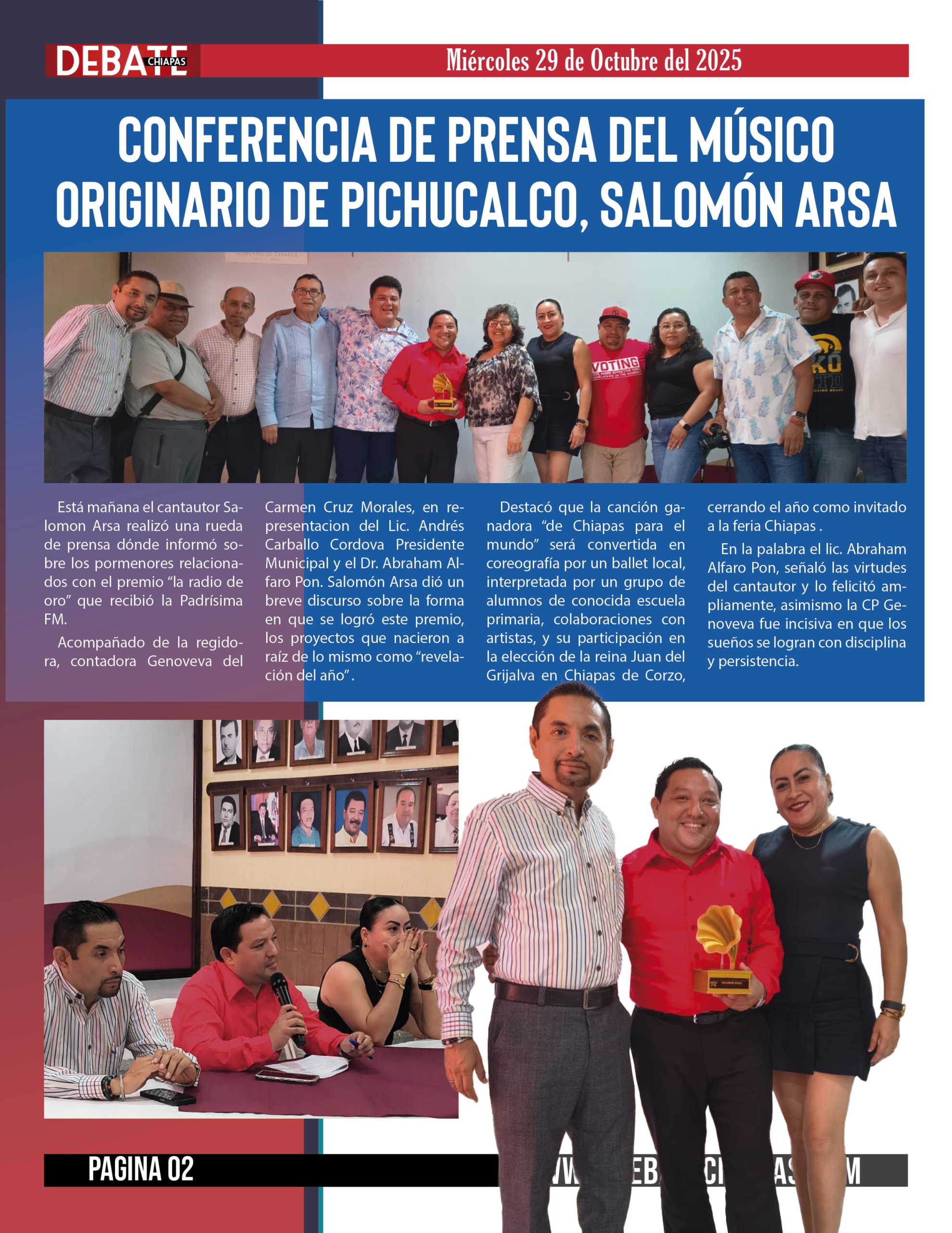 Conferencia de prensa del músico originario de Pichucalco, Salomón Arsa