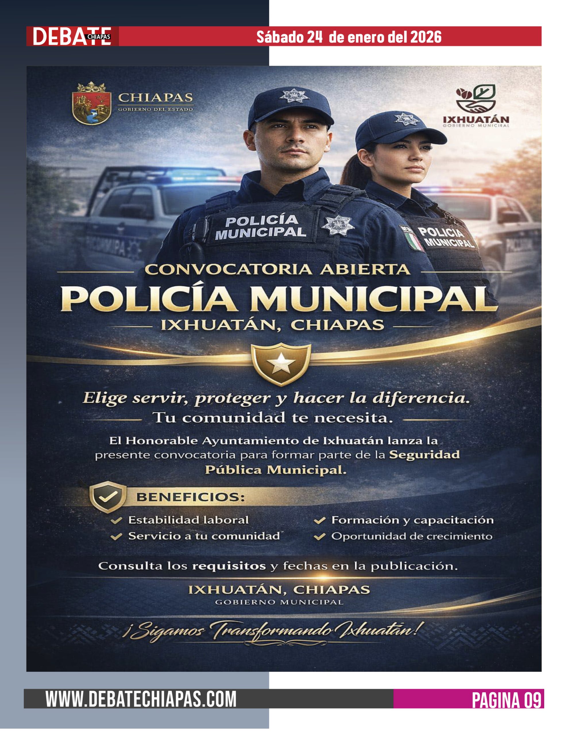 CONVOCATORIA ABIERTA: POLICÍA MUNICIPAL DE IXHUATÁN, CHIAPAS